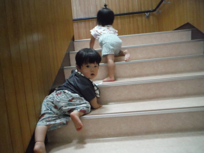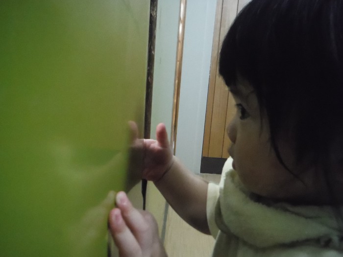 ドアの向こうに見えるお姉さんたち。何しているかな?のぞいている姿が、可愛らしかったです。