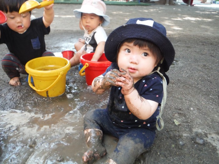 どろんこ遊び、楽しかったね!黒ひげ生えちゃった!