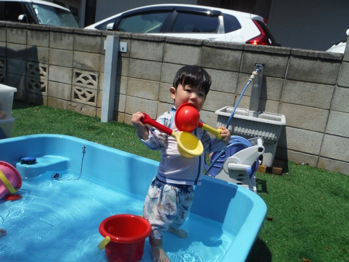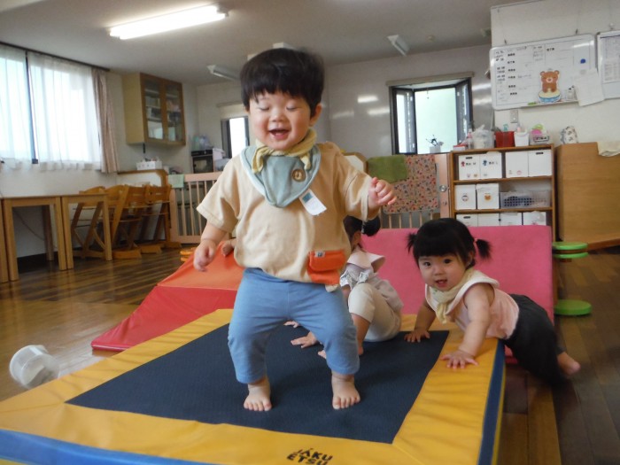 ジャンプジャンプ楽しいね!「カエルのうた」を歌って、トランポリをンバンバン!いい音がするね!