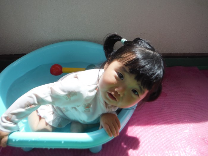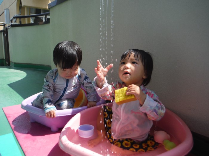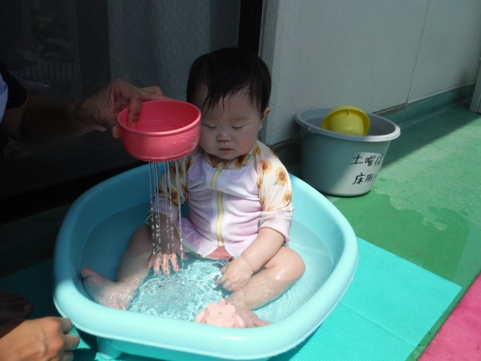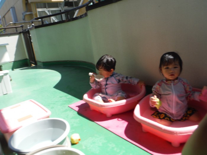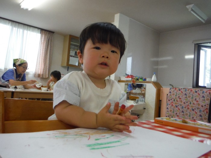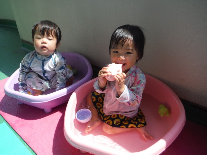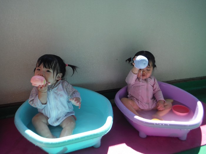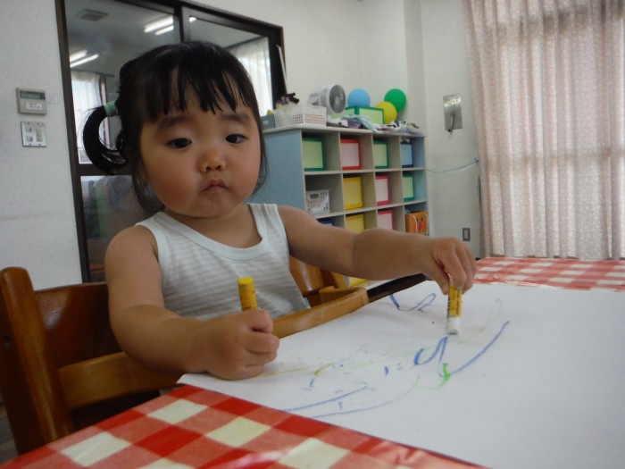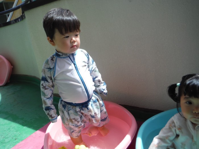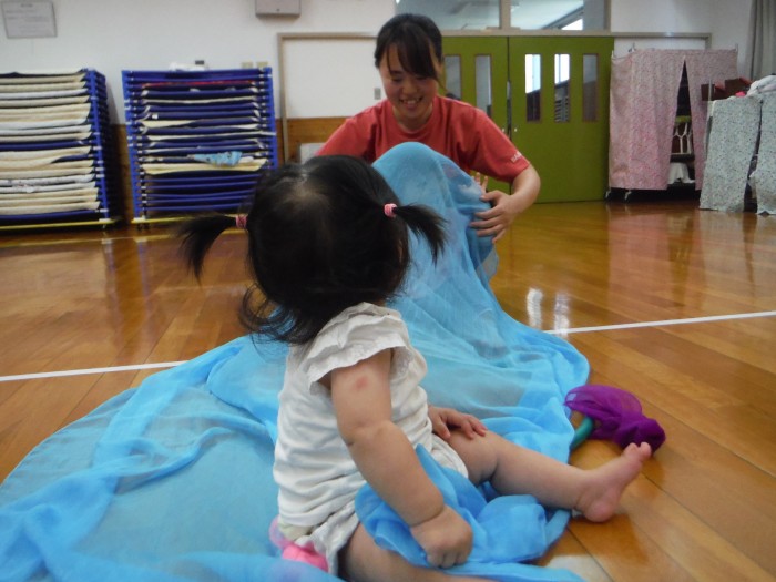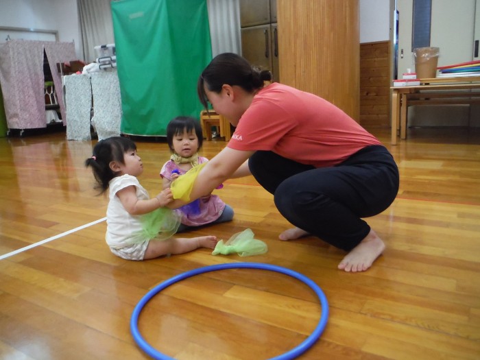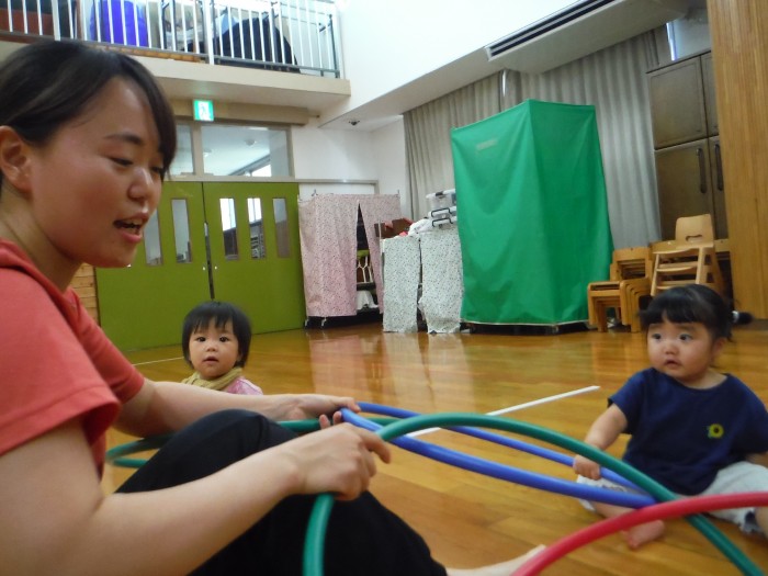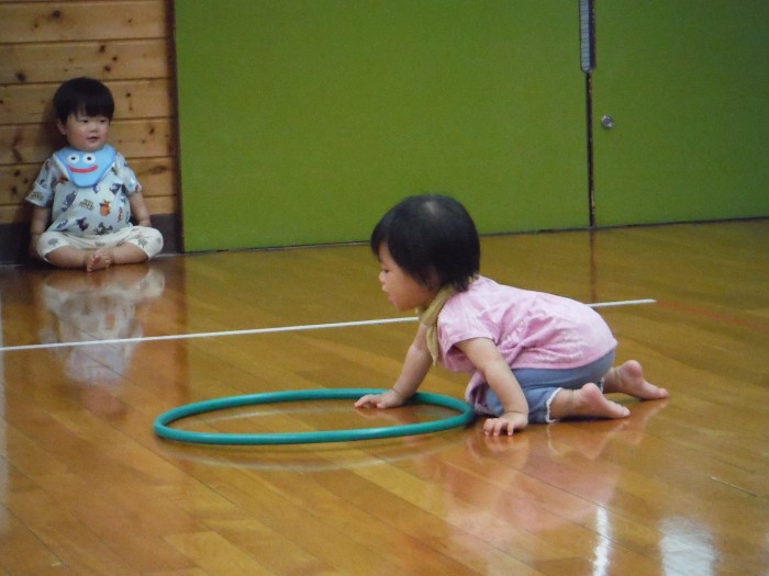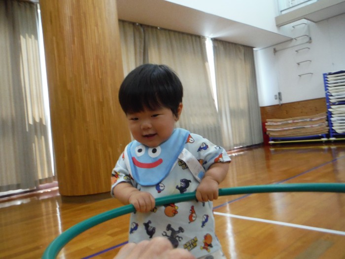 リトミックでは、フラフープにつかまって「お船はぎっちらこ」上手につかまれました!