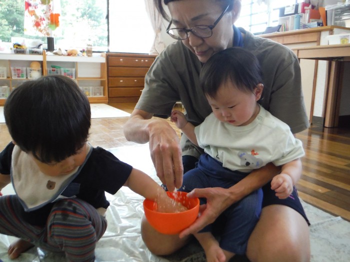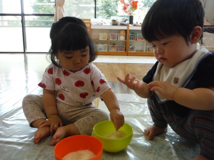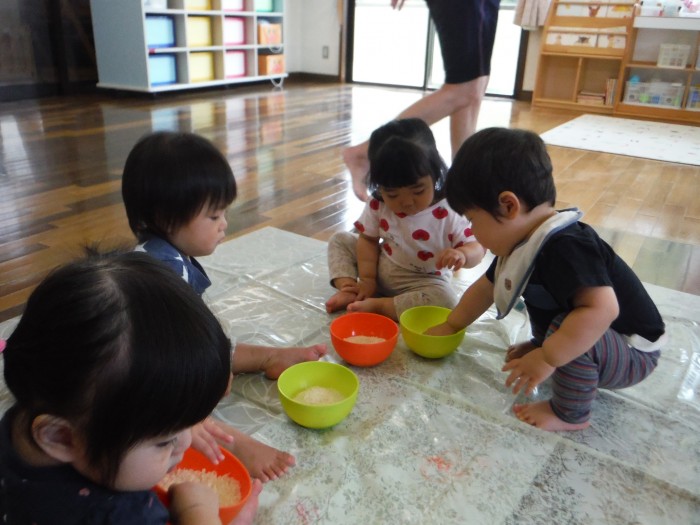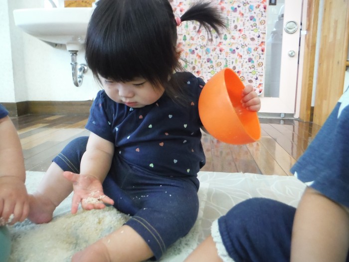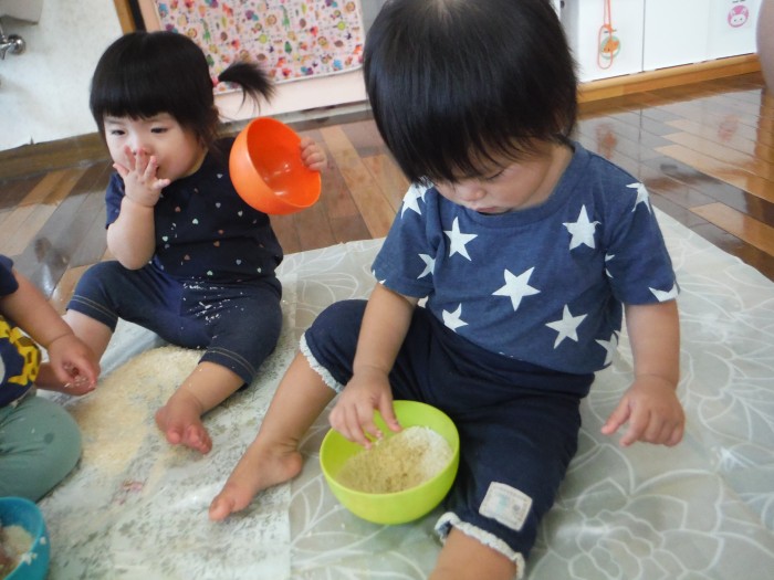 パン粉で感触遊びも楽しみました!サラサラ気持ちいね!