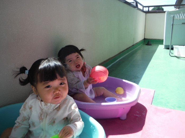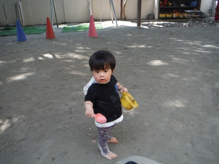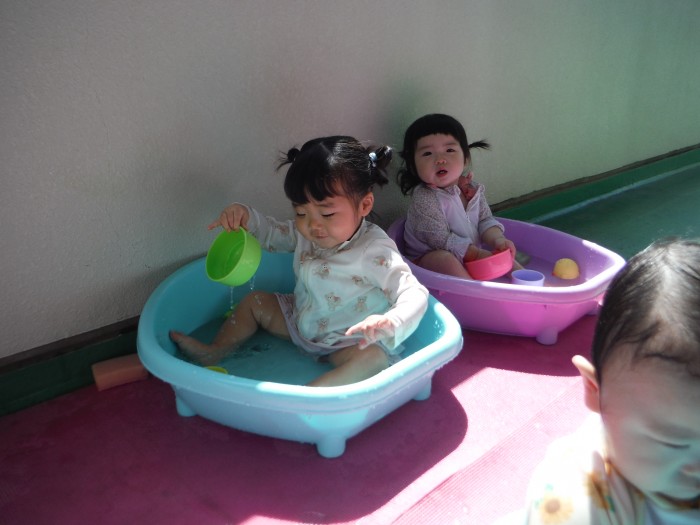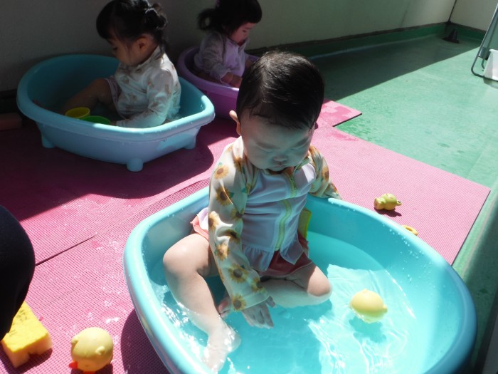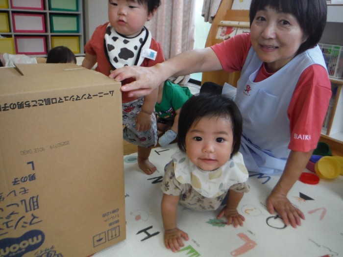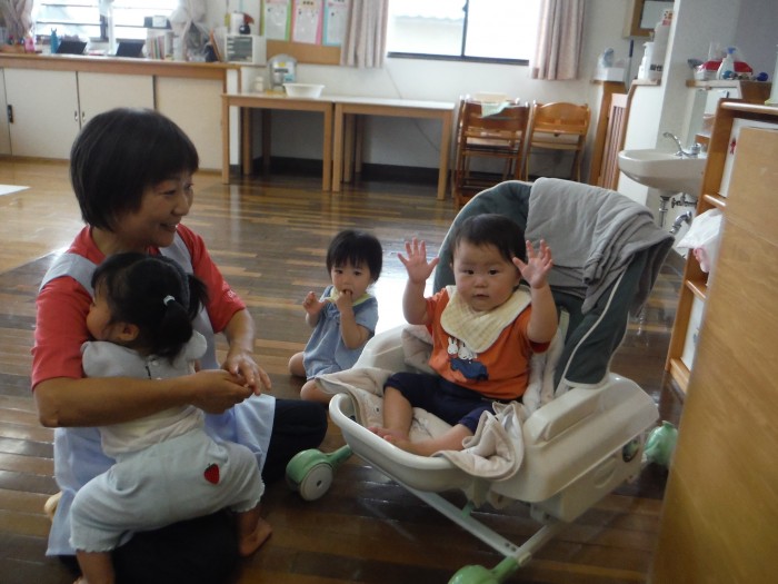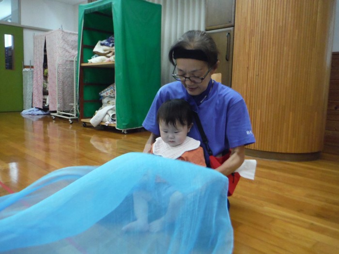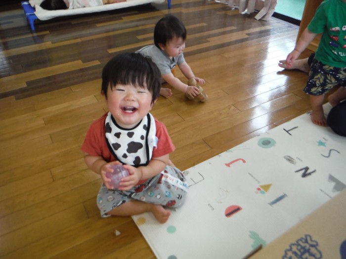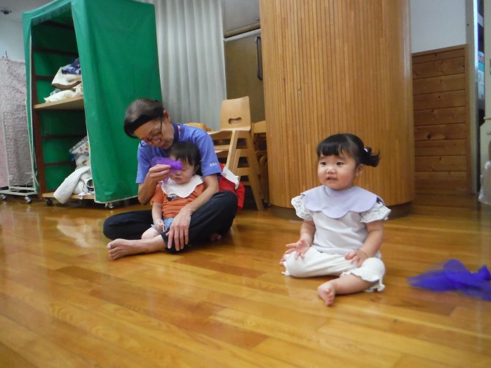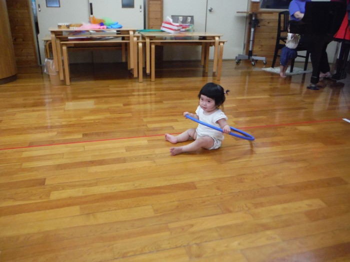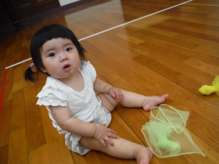お座りの子も、フラフープやスカーフを持ってノリノリなひよこ組さんです。