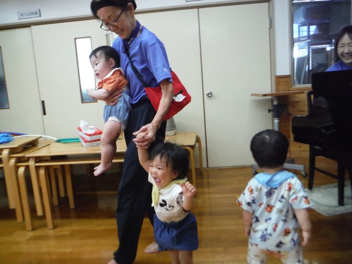 歩ける子は、ピアノに合わせて、楽しく動き回りました!