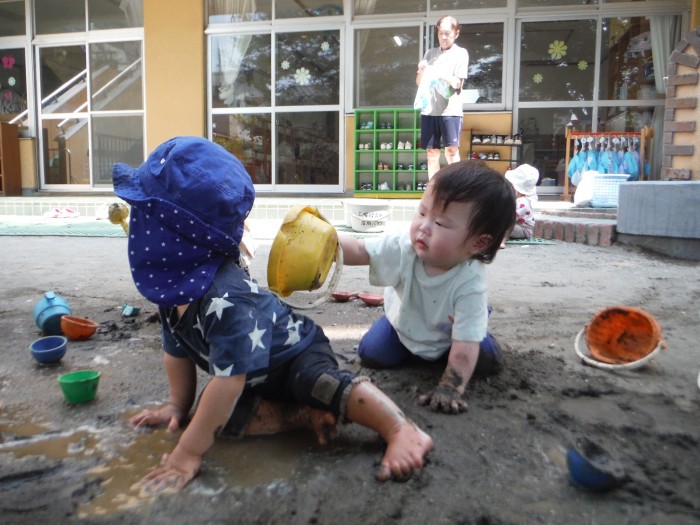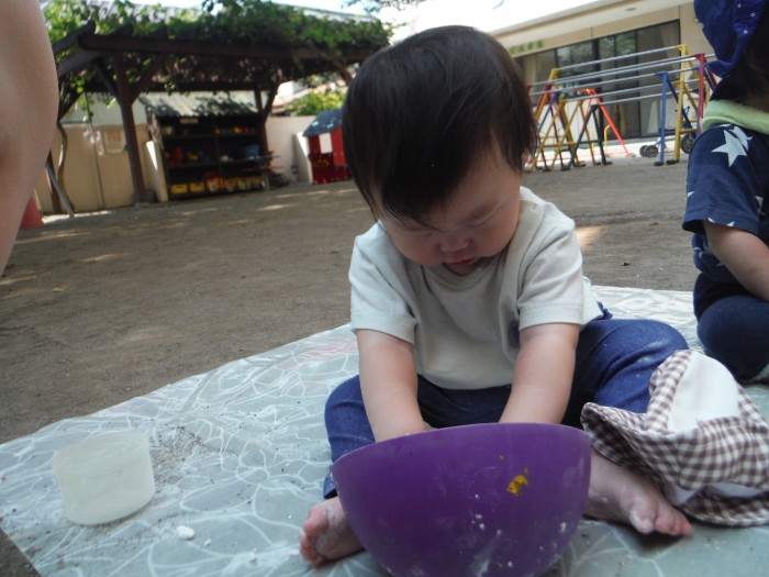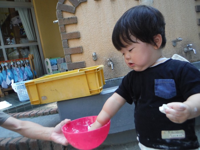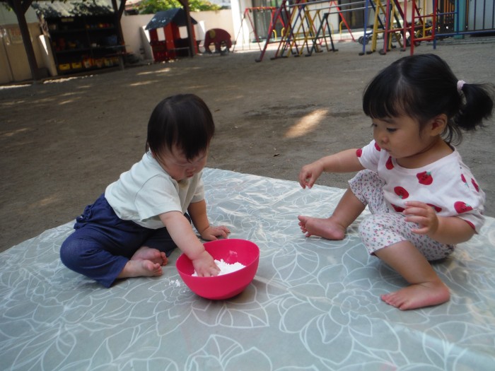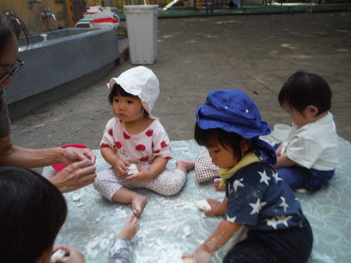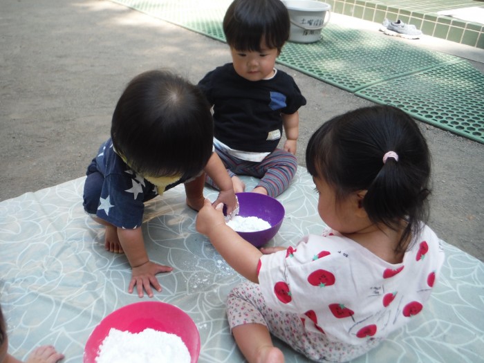 上新粉に興味津々な子ども達。夢中になって触っていました!