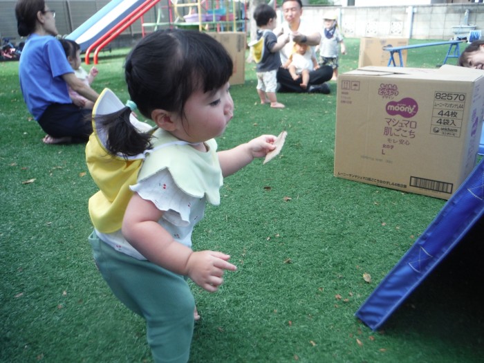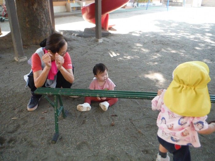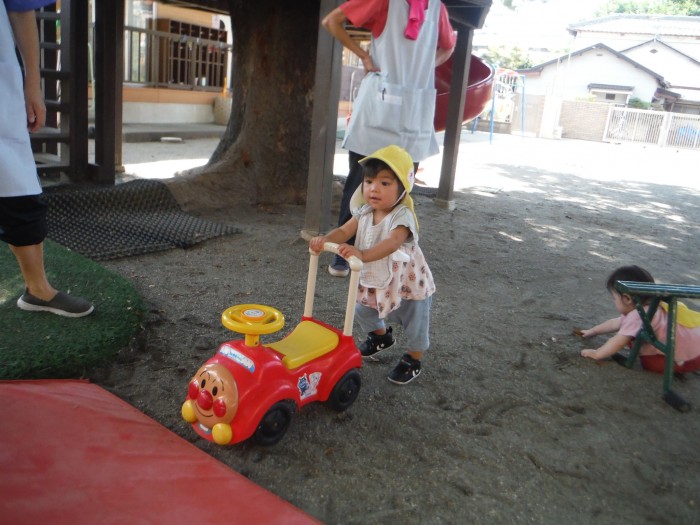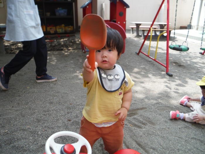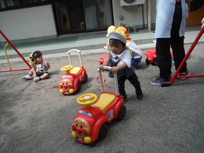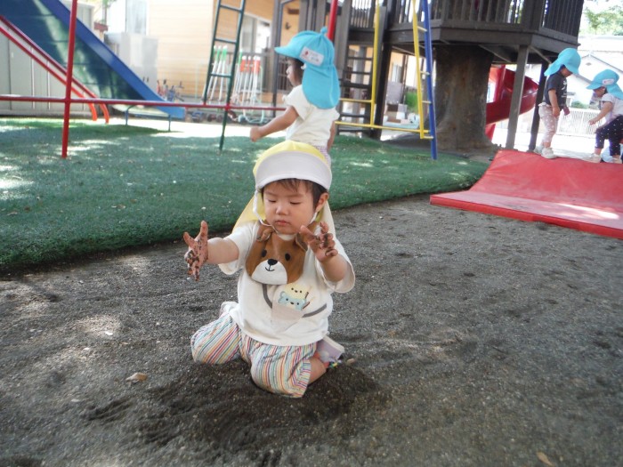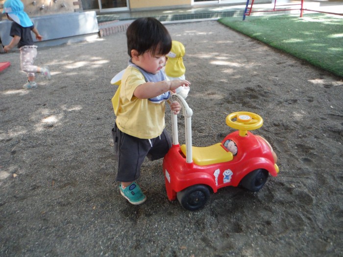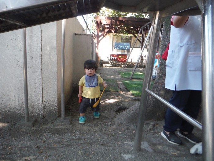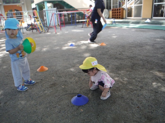 先週に初めて園庭遊びした子も慣れてきて、探索活動が活発になってきました!