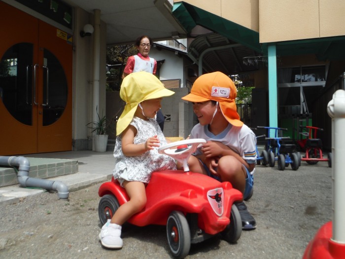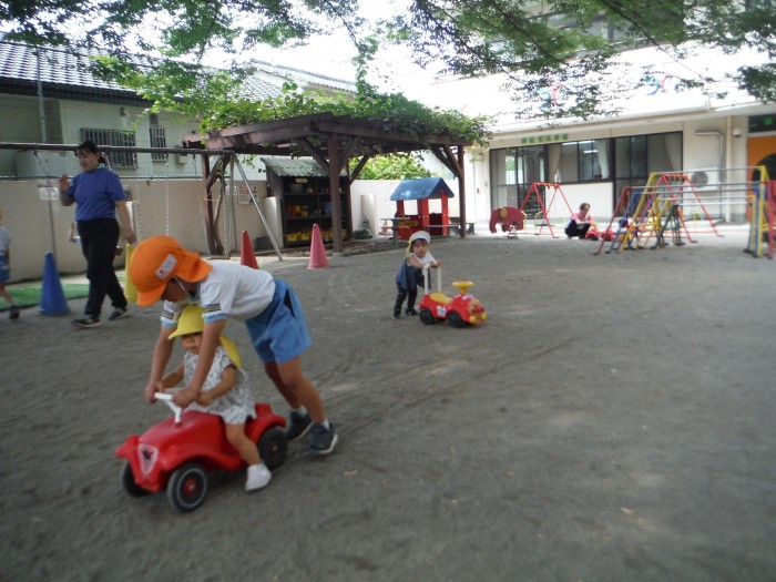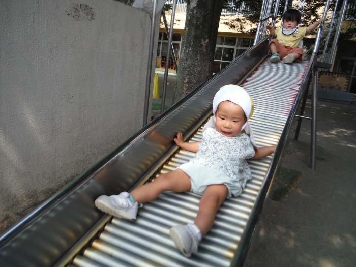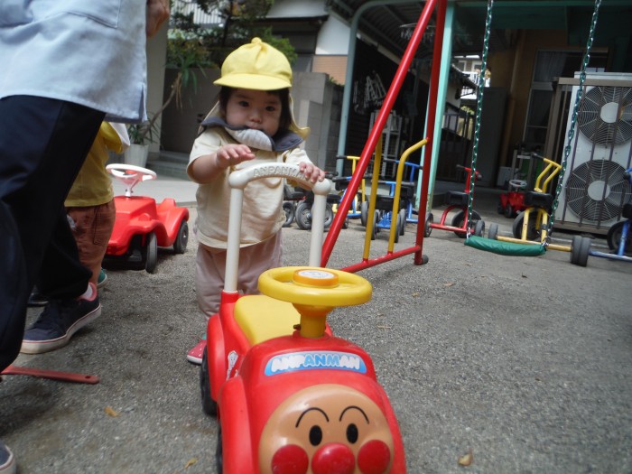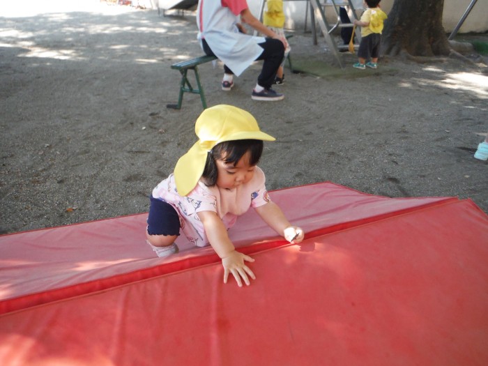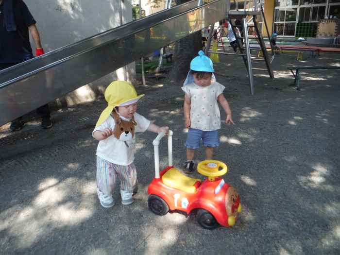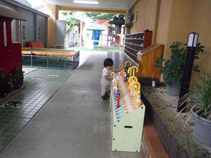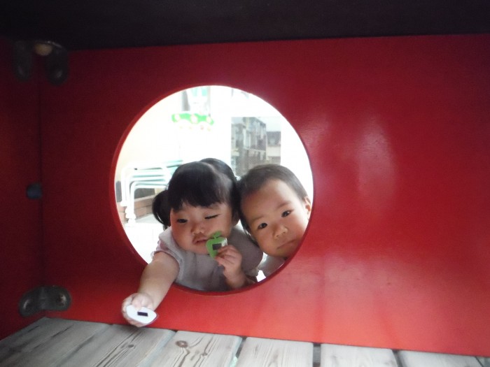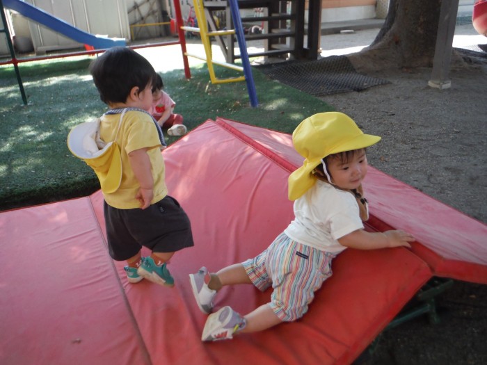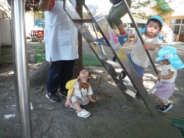先週に初めて園庭遊びした子も慣れてきて、探索活動が活発になってきました!