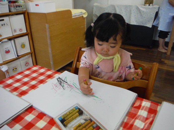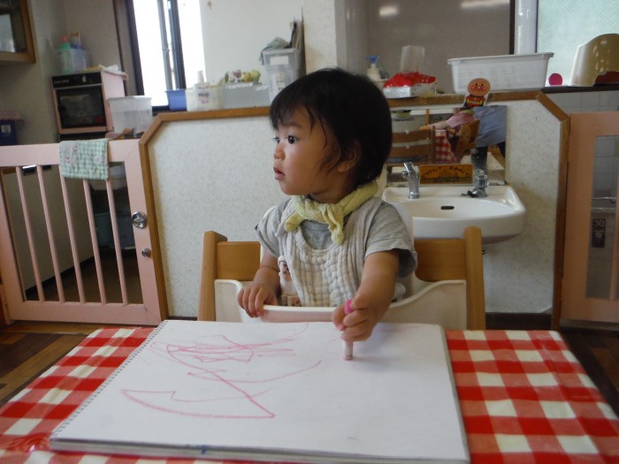 お絵描きの様子♪手をいっぱい動かして上手にかけたね!