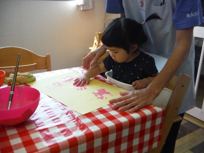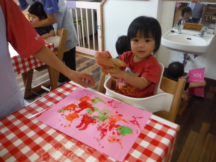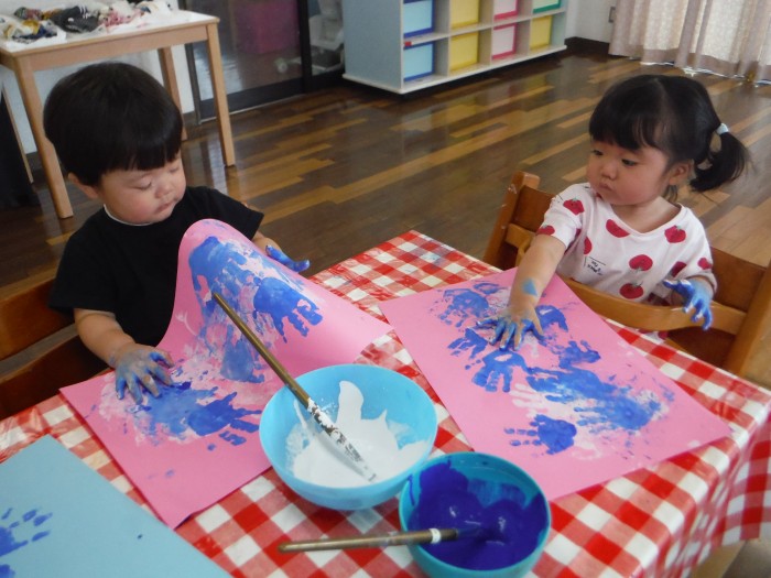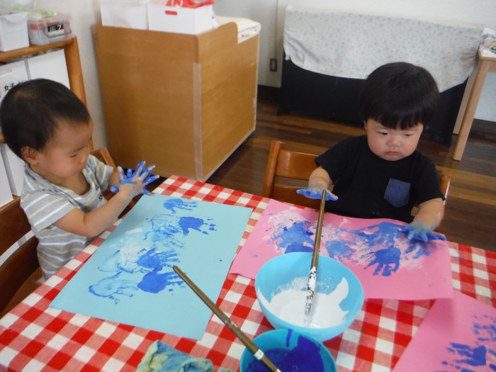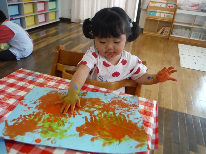 絵の具遊びで手形をたくさん押して遊びました!