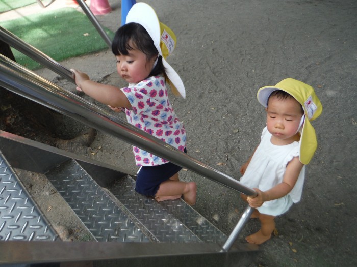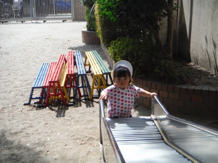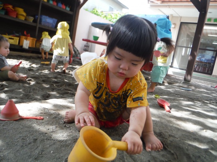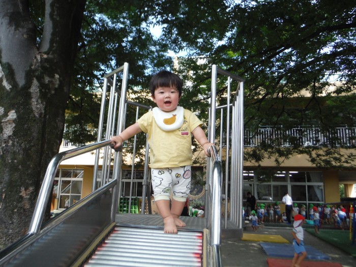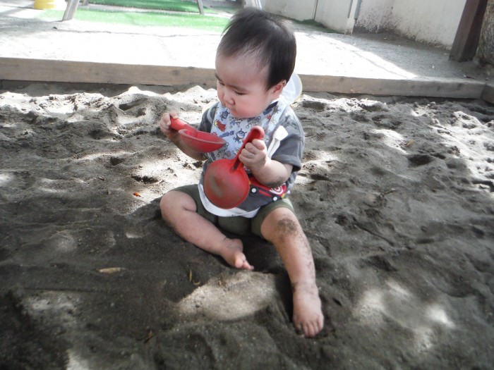 お外遊び 砂のうえは気持ちいいね!滑り台もできるよ!