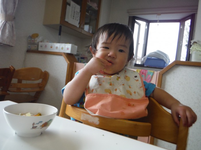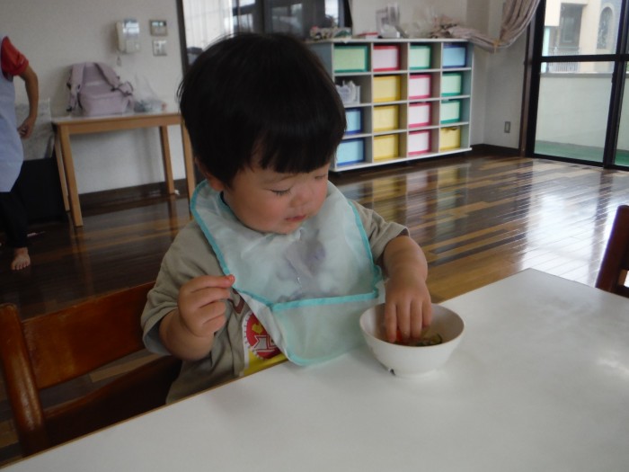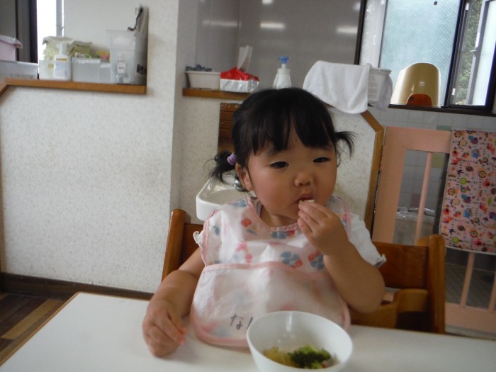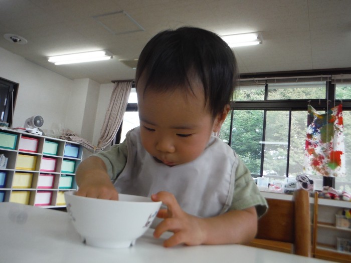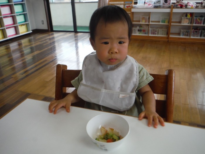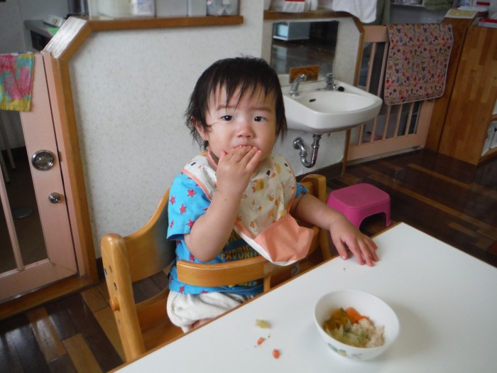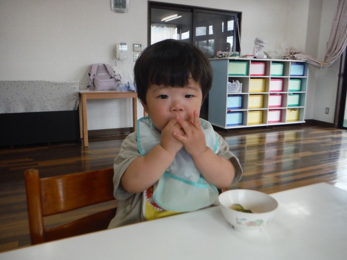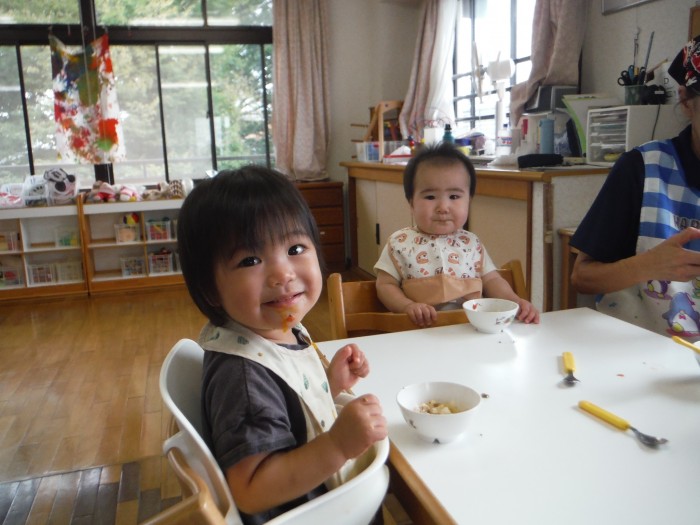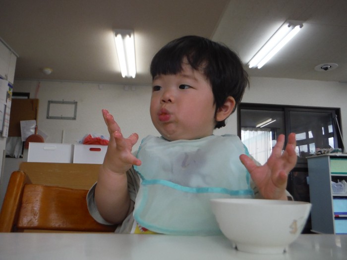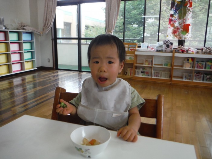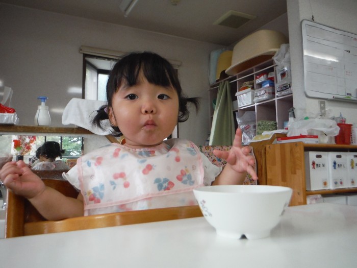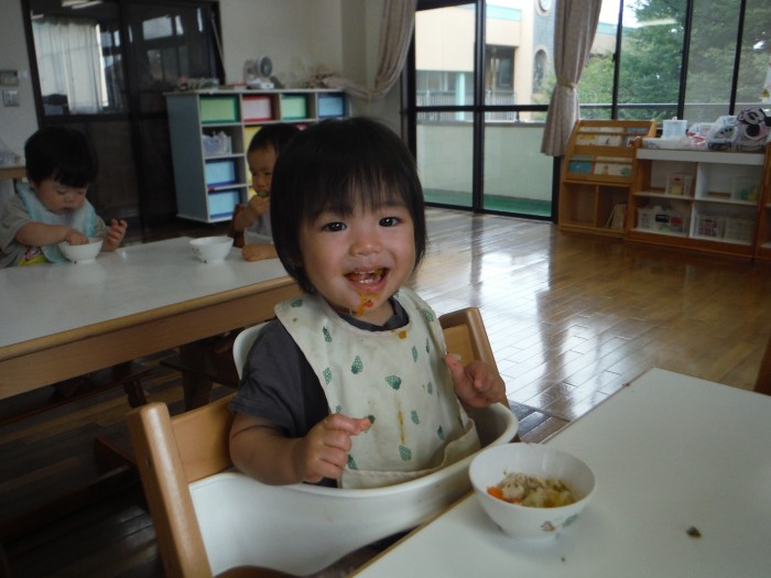 給食モリモリ食べて、「おいしー!(^^)!」