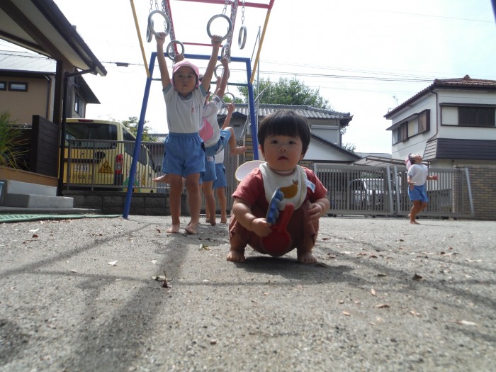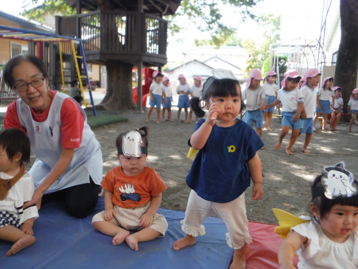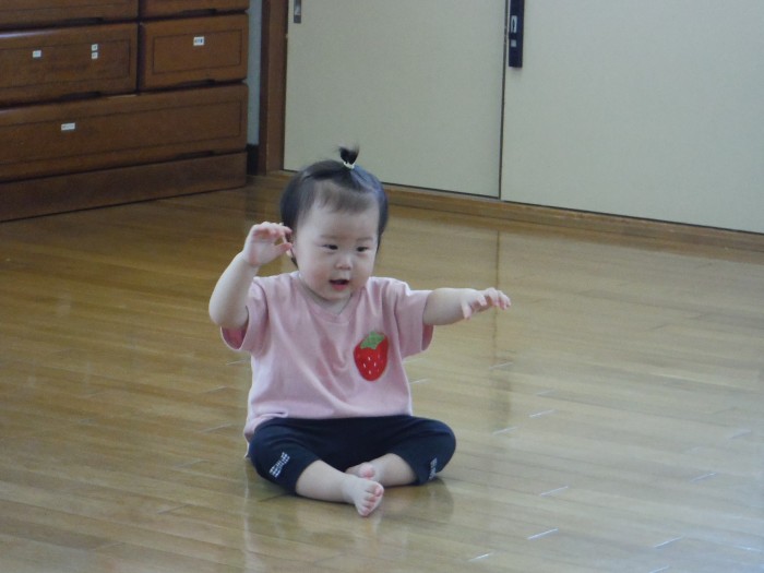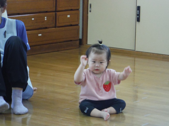 朝会でノリノリなひよこ組さん発見!手をいっぱい動かして、楽しいね!