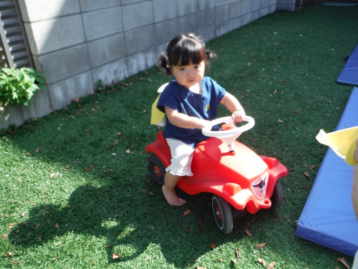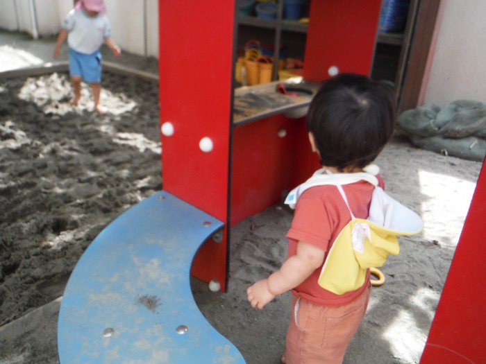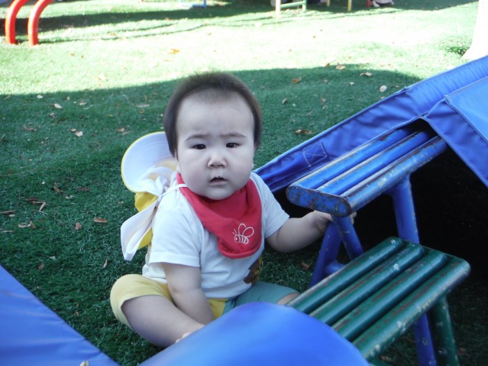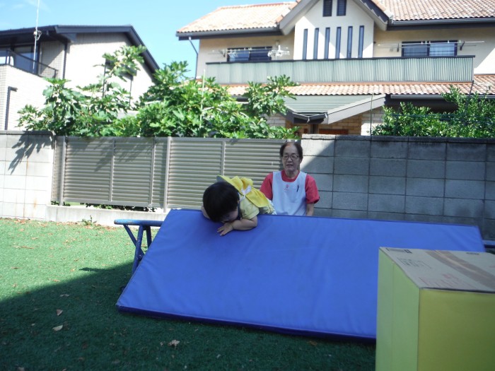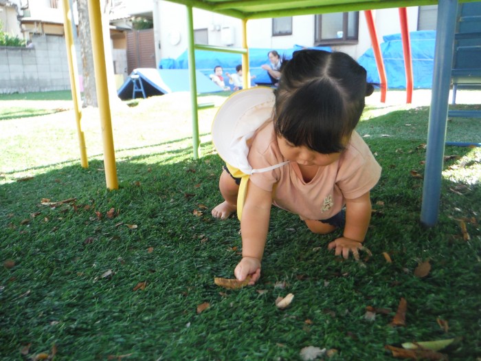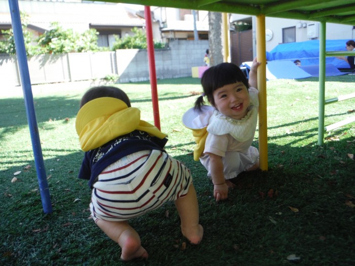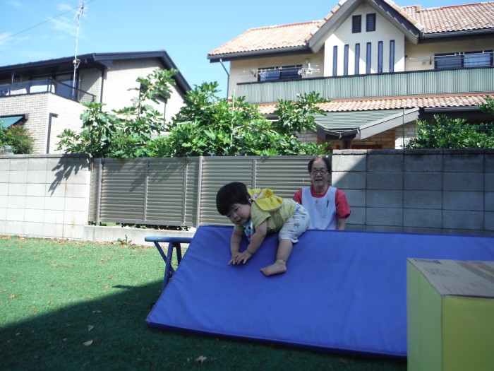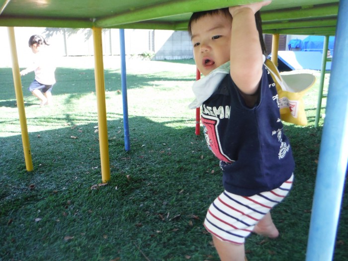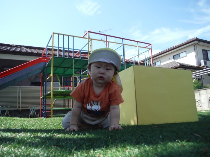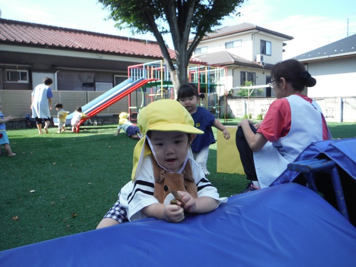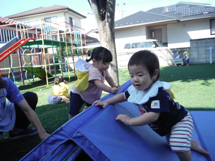お外遊びの様子②運動会の練習でお山登りや段ボールをどすこいどすこい♪