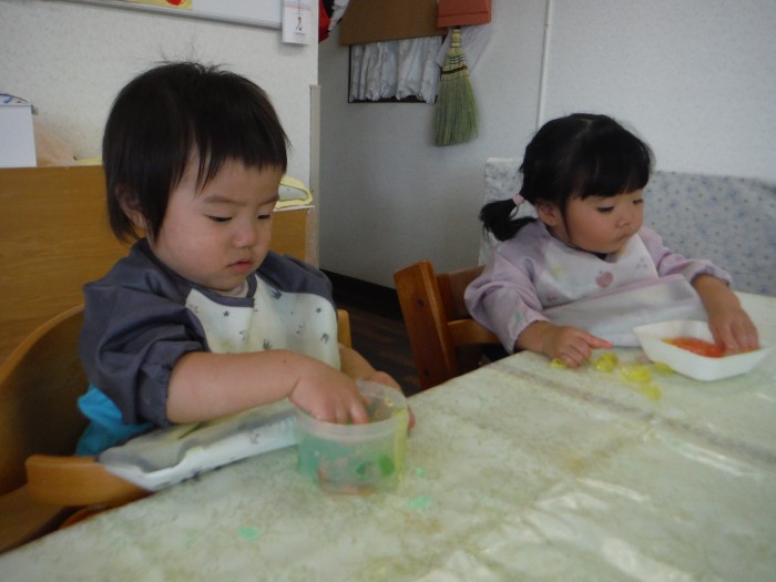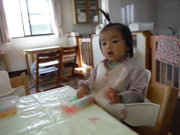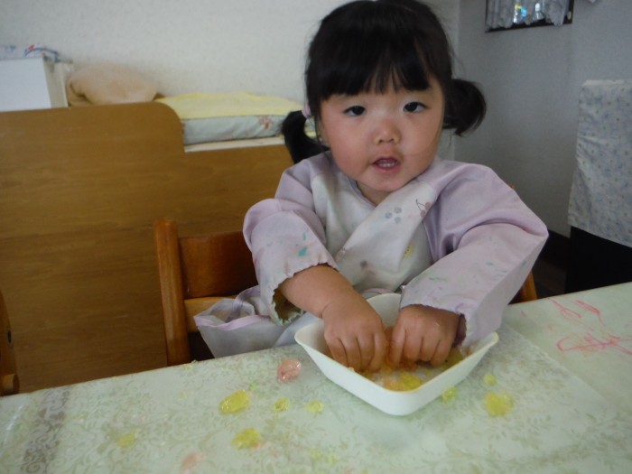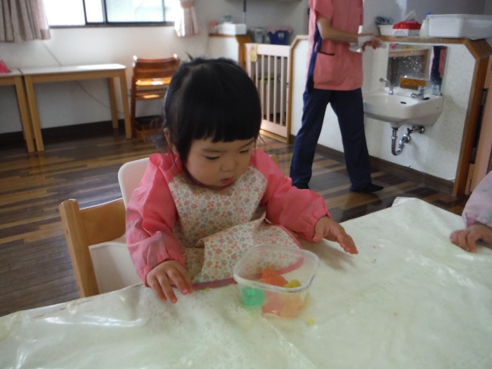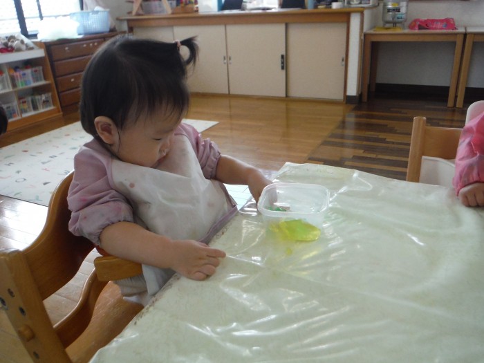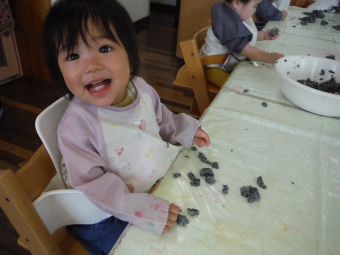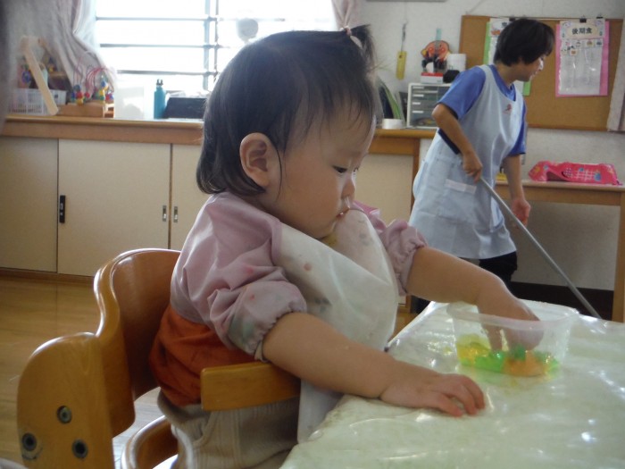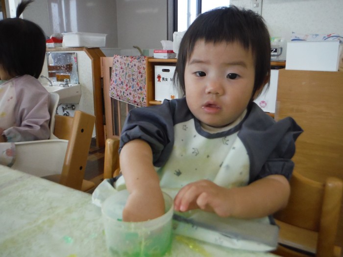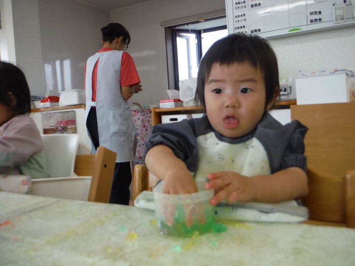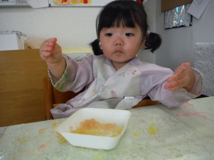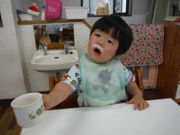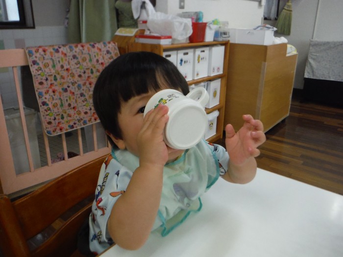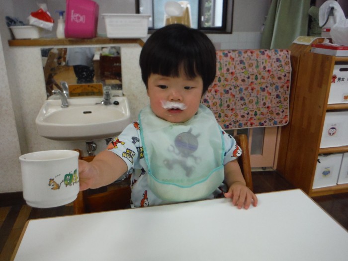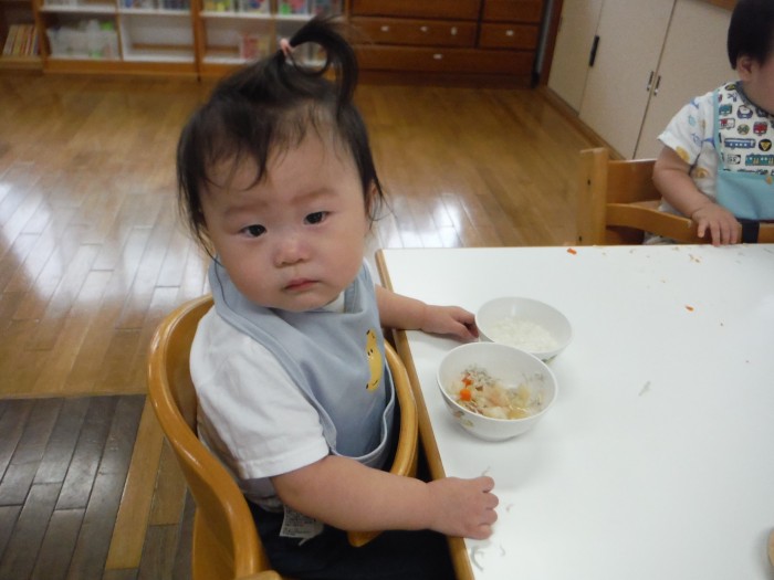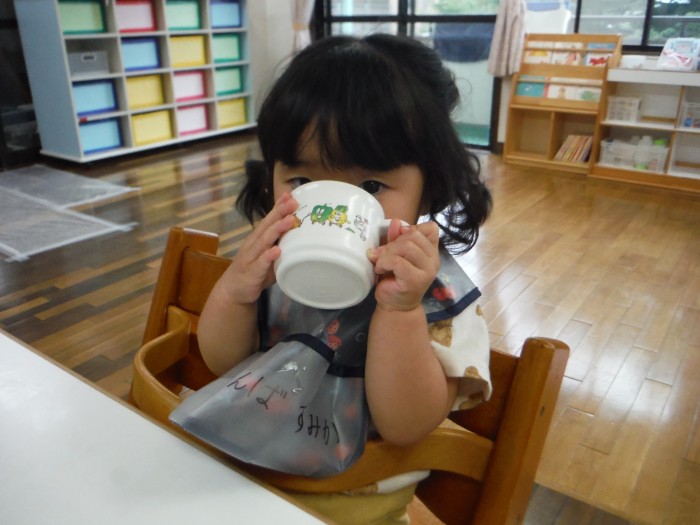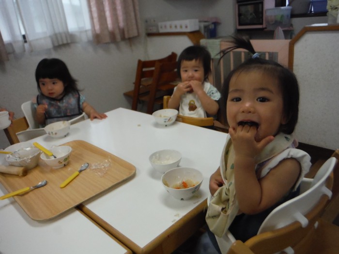 給食とおやつの様子です。可愛らしい一面をパシャリ♪