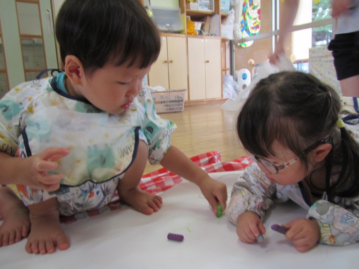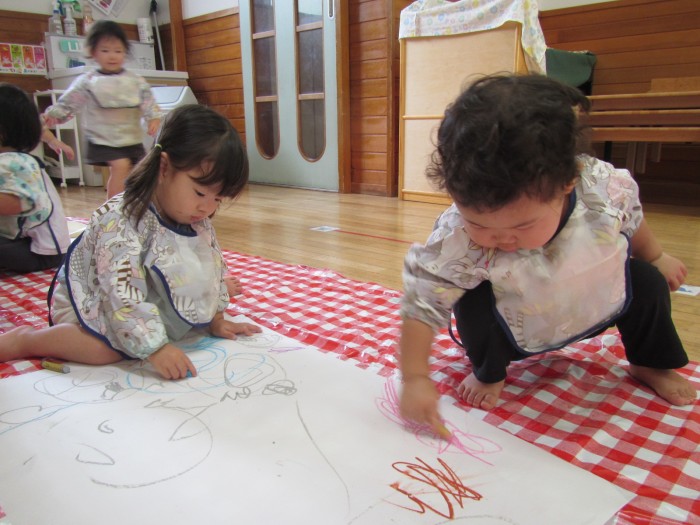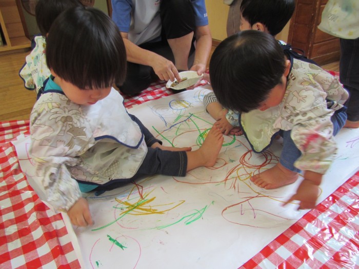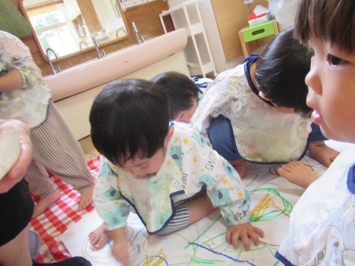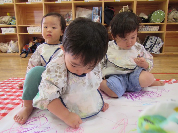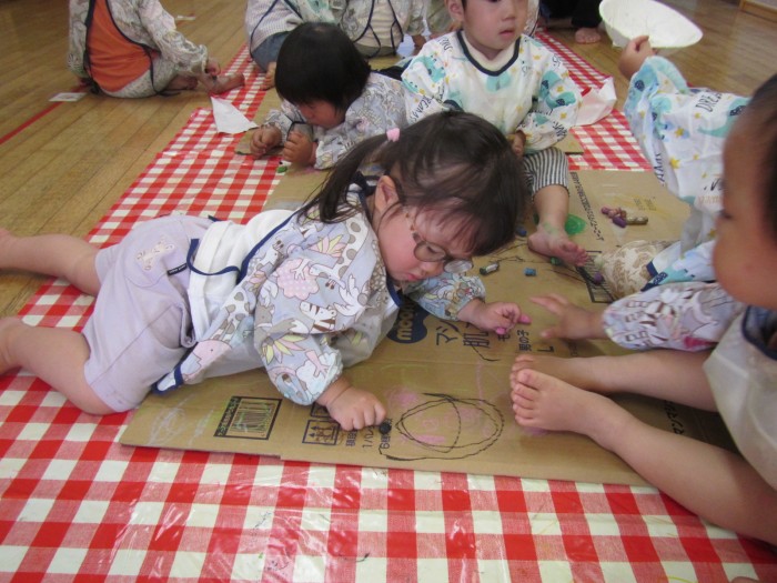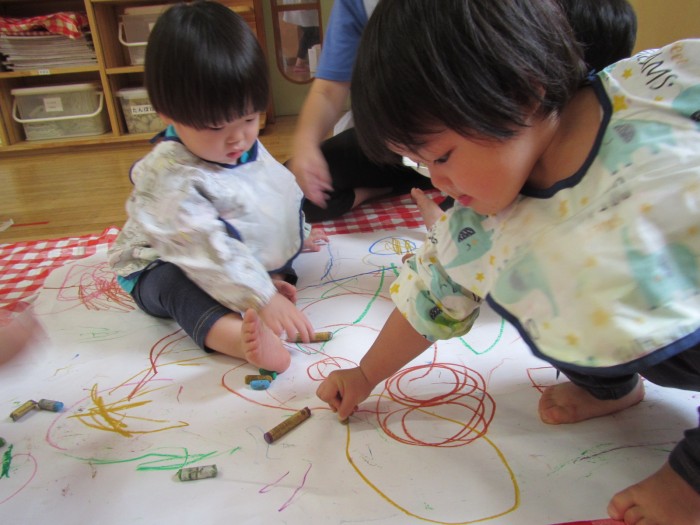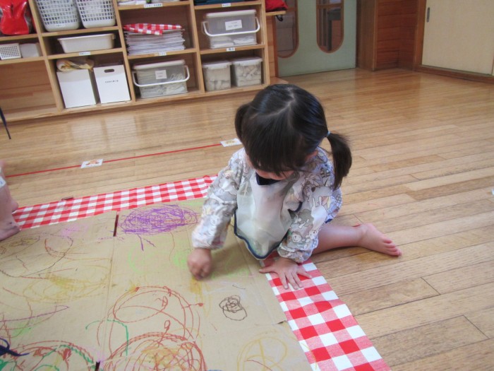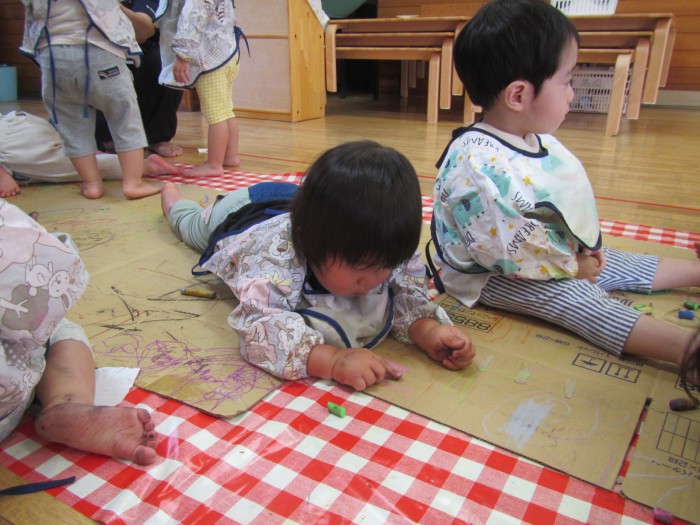 段ボールや模造紙を広げてクレヨンでなぐり書き🖍️