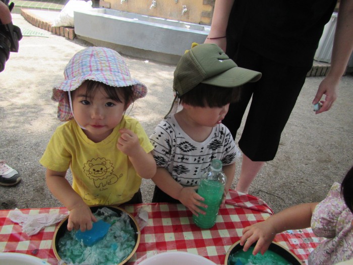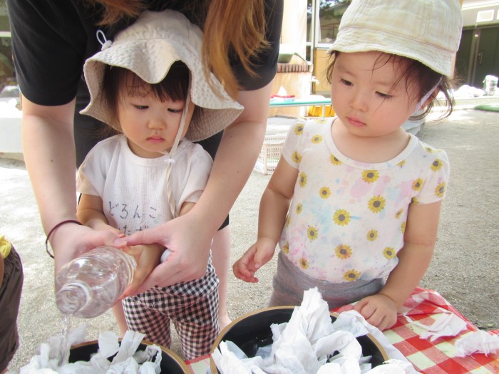 紙が濡れていく様子や、寒天のプルプルした感触を楽しみました。
