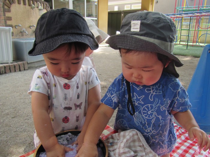 最初見ているだけだった子もみんなが楽しそうに触る姿を見て、一緒に触る様子がありました♪