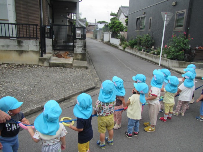 また涼しい日はみんなでお散歩。みんなも「わんちゃんいるかな?」と散歩を楽しみにしています。