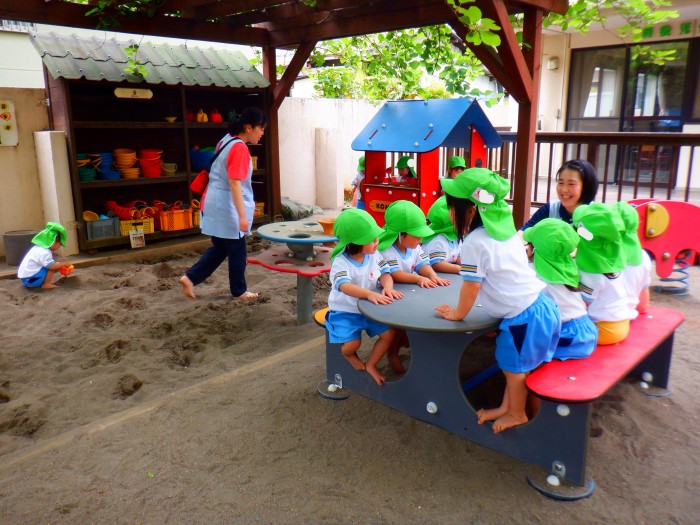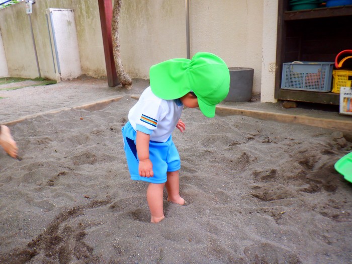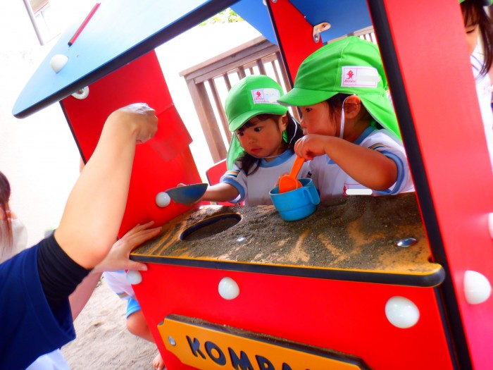 園内の砂場のハウスが新しくなり、興味深々な様子のひまわり組さん。みんなで座って楽しそうに遊んでいました☺️