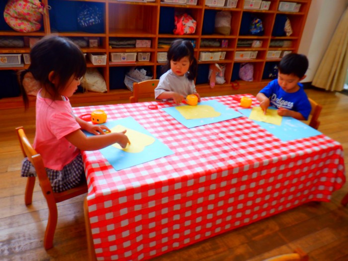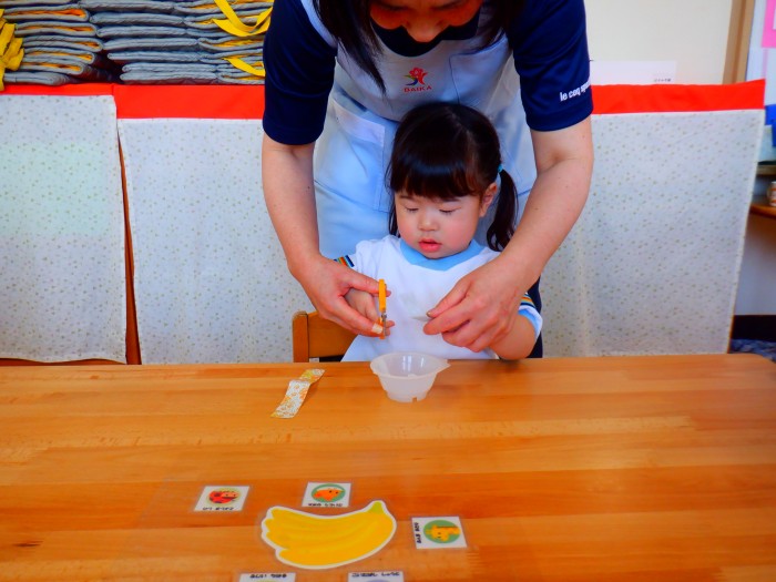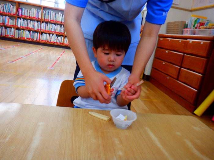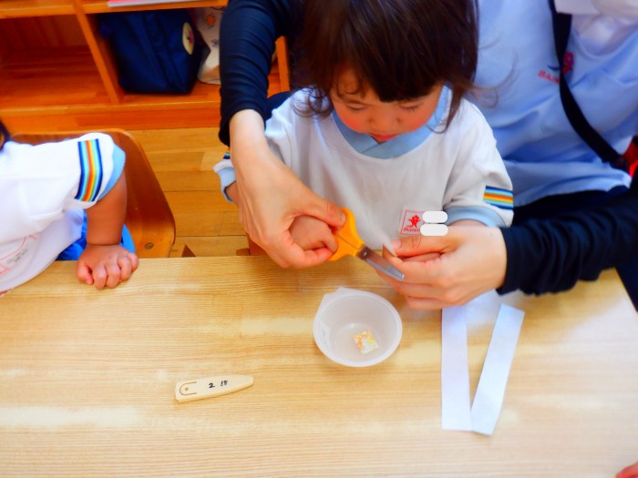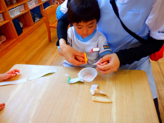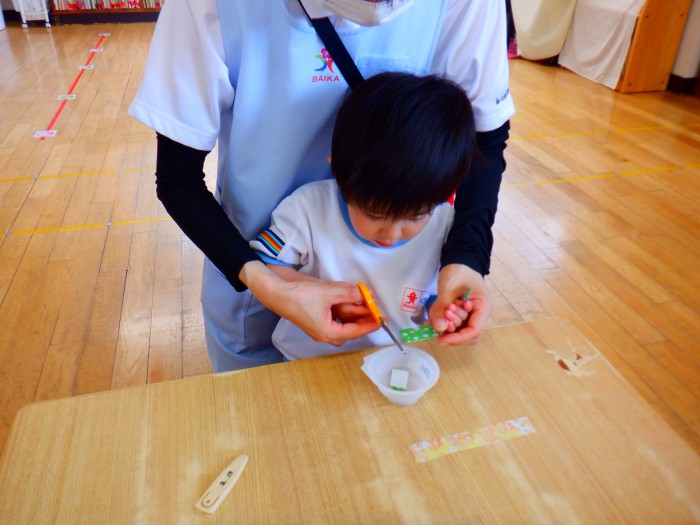 ハサミの一回切りも行いました。グーパーと手を動かしながら切ることができました!