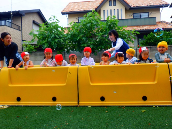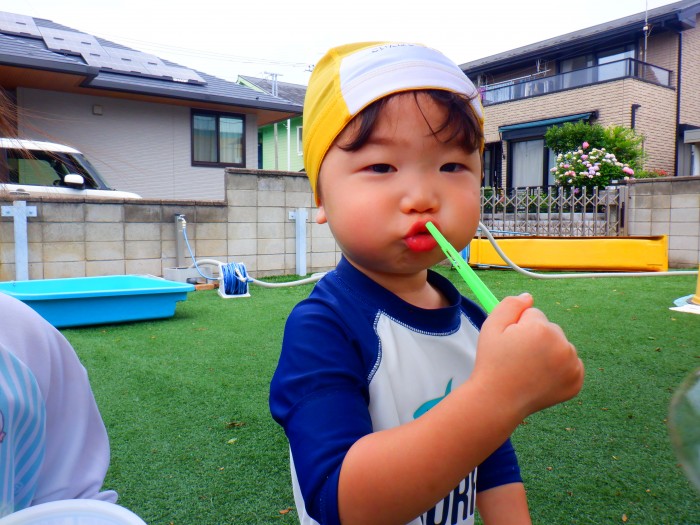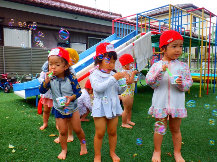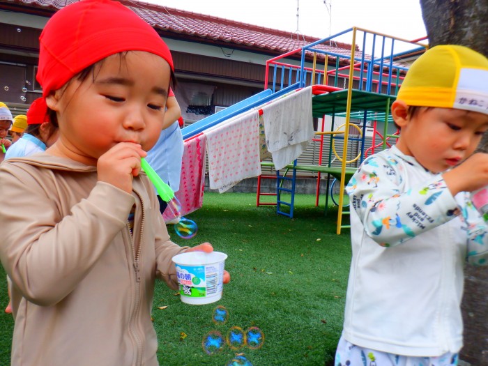 順番を待っている子たちでシャボン玉をして遊びました。「大きいの飛んでった!」とシャボン玉を見て嬉しそうにしていました☺️