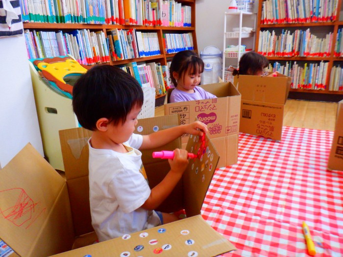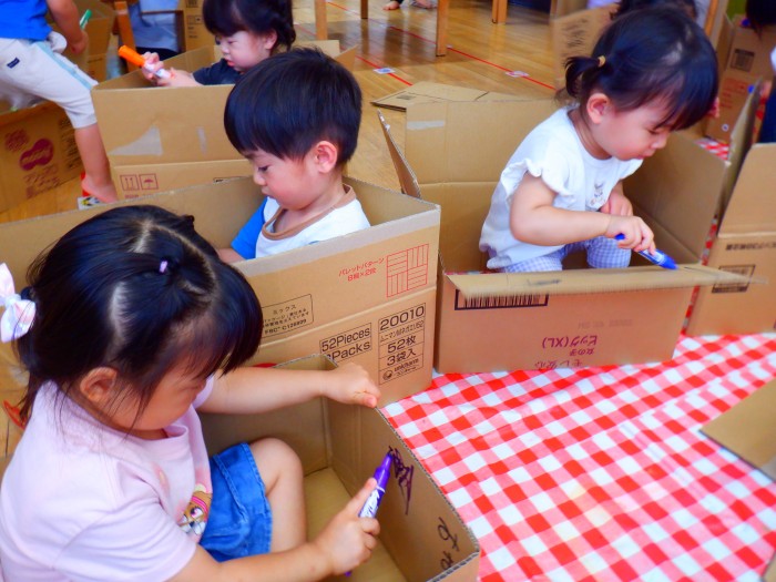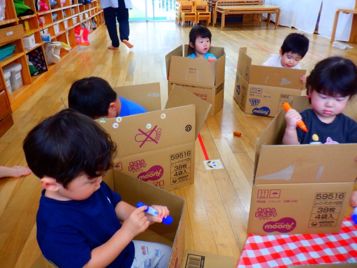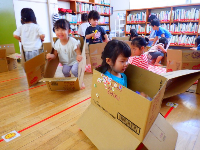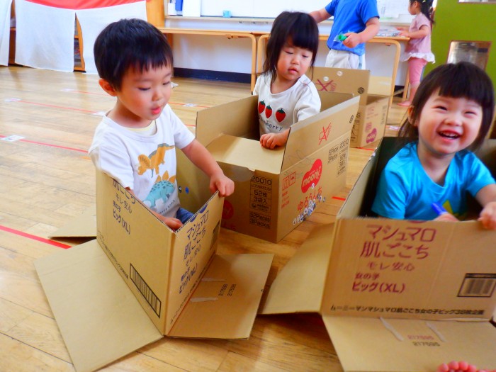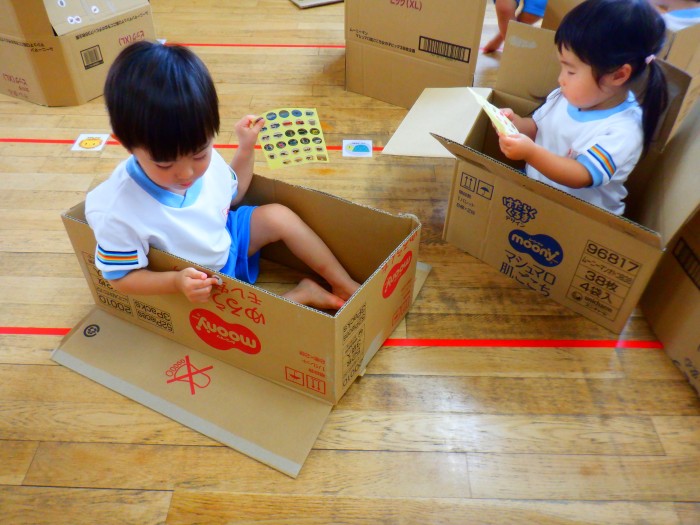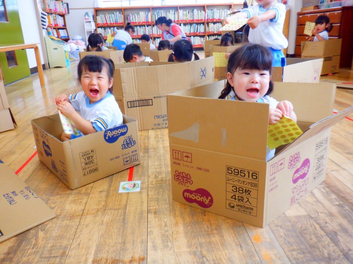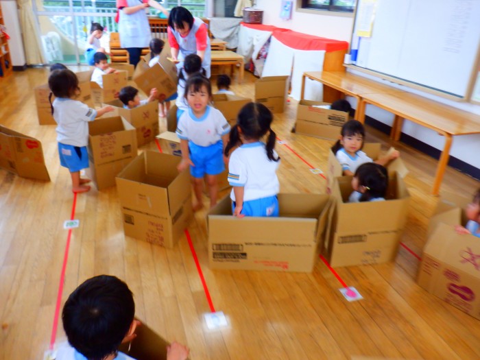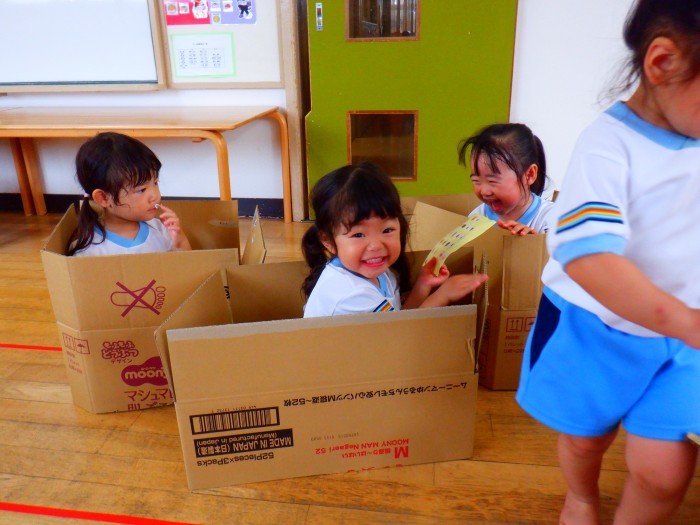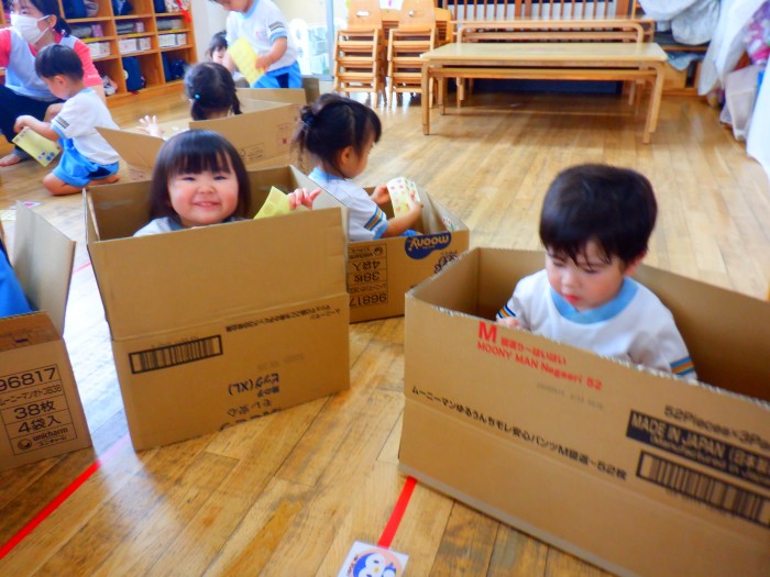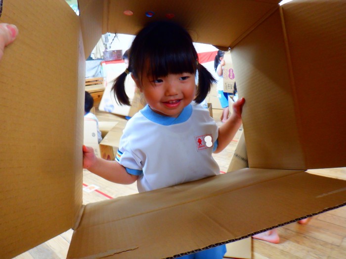1人ひとつ段ボールを渡し、皆で遊びました。