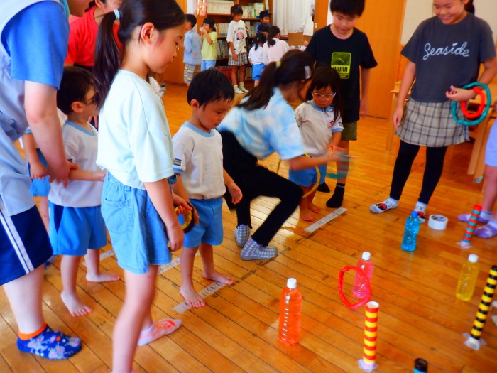 学童室に着くと色々なブースがあって目をキラキラ輝かせていました✨ワニワニパニックや魚釣り、射的に輪投げと沢山のゲームを楽しみました☺️