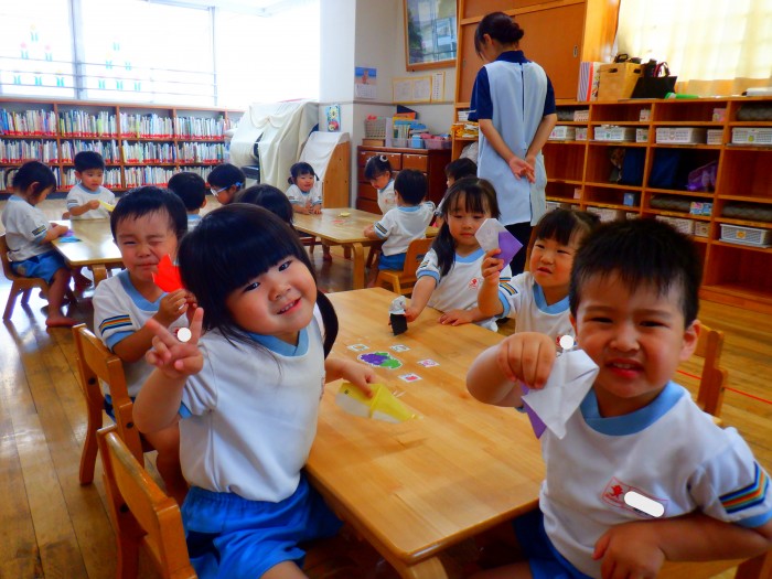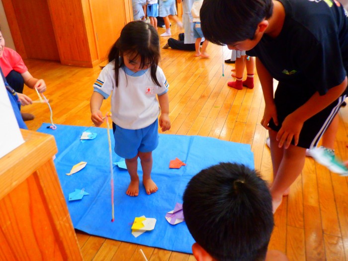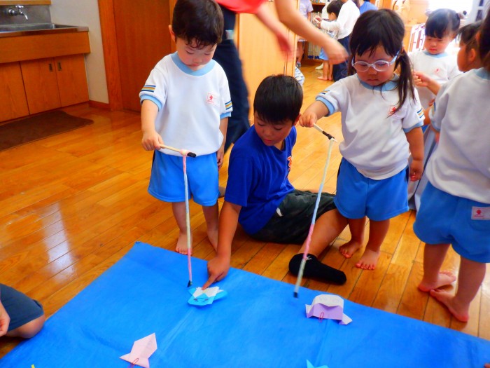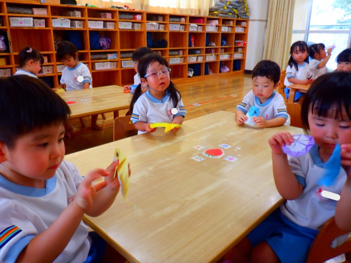 お部屋に戻り自分の席で嬉しそうに魚の折り紙を「見て見て!」と嬉しそうに先生に見せてくれたひまわり組さんでした🌻