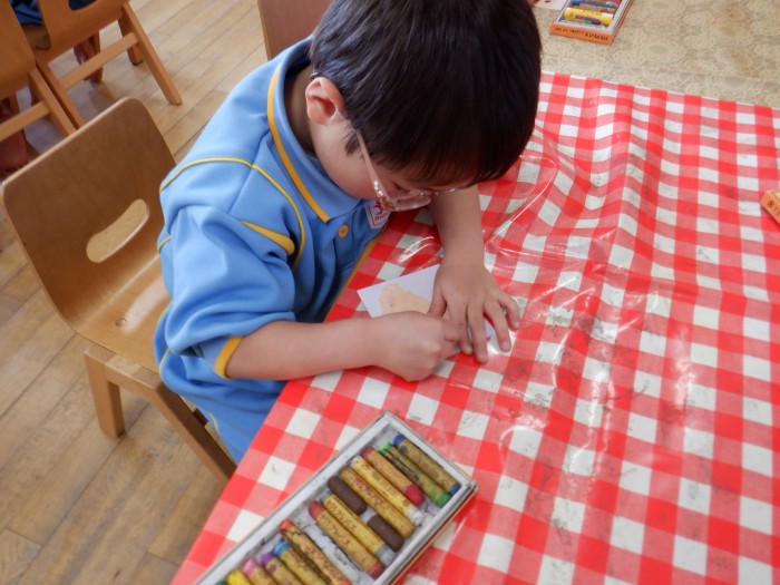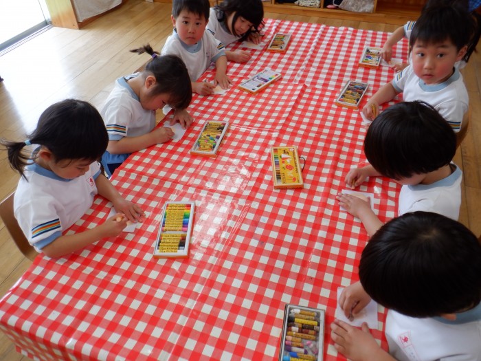 「きれいな卵を作ってね」と伝えると、みんな一生懸命描いていました!