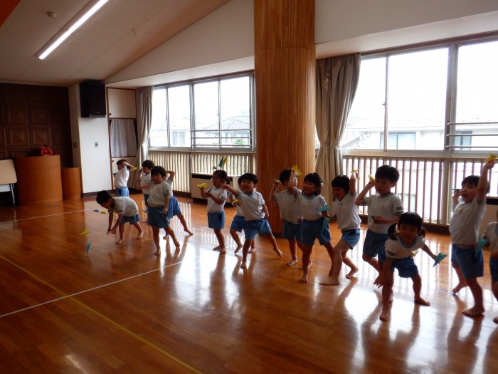 「もっと飛ぶ紙飛行機も作ってみたい!」「お家でパパとママにも作ってあげようかな~」ととても楽しかった様子のつばめ組さん。またみんなで違う紙飛行機も作って飛ばしてみようね!