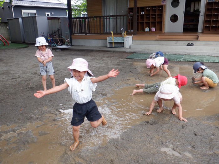 お水の上でジャンプをしたり、どろを投げたりして全身を使ってたくさん遊びました!