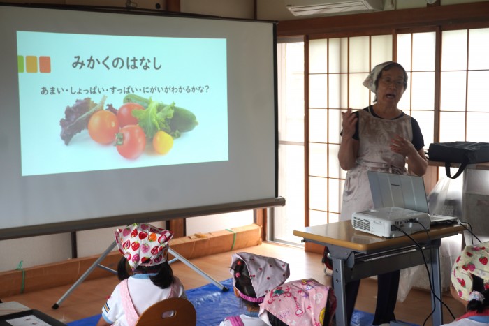 「舌の場所によって感じる味が違うんだよ」というお話もみんな興味津々で聞いていました。