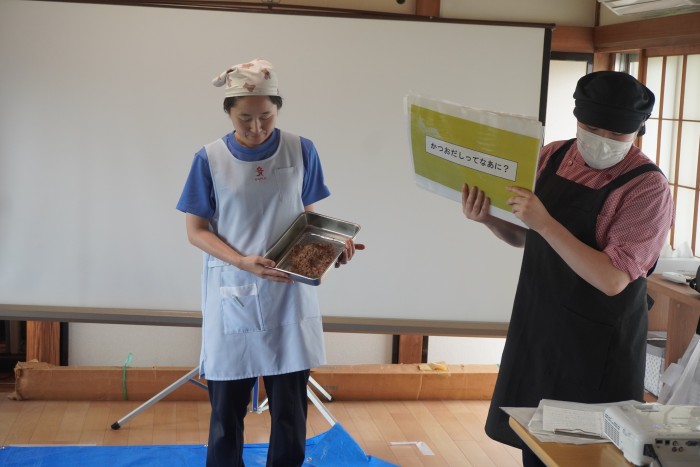 出汁の飲み比べもしました。鰹や昆布、にぼし、しいたけなどの出汁を飲んで、どの出汁かクイズをしました!