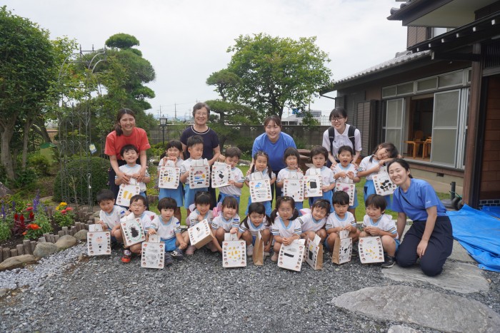 最後にみんなで集合写真を撮りました!素敵なバックや美味しい給食が食べられて大満足なつばめ組さん。