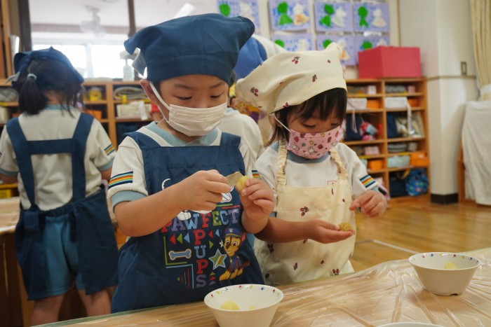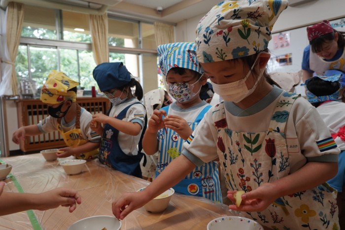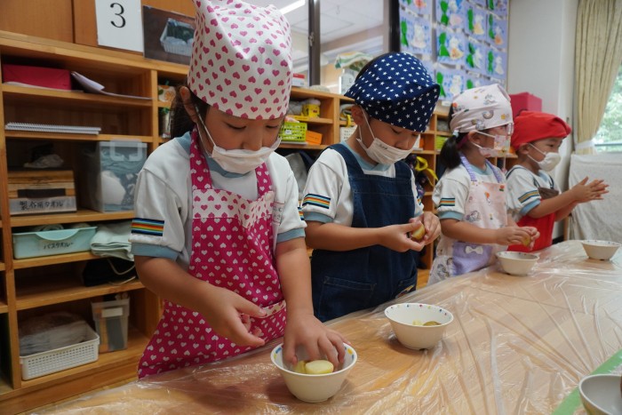 すみれ組では食育活動でじゃがいもの皮むきをおこないました。