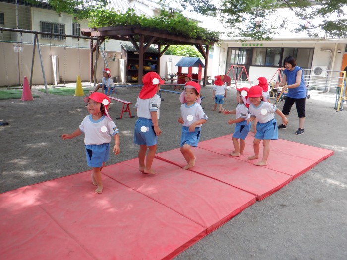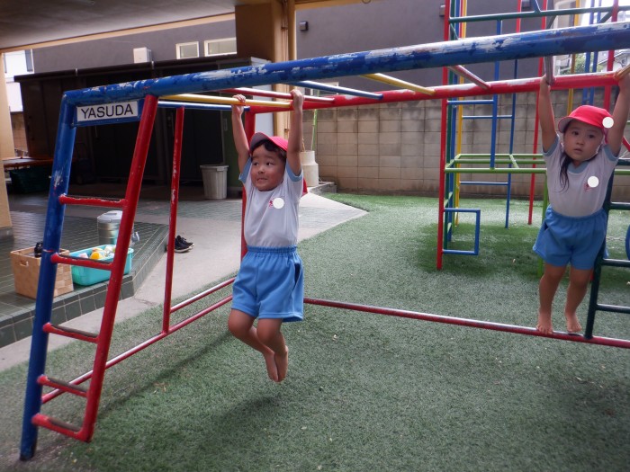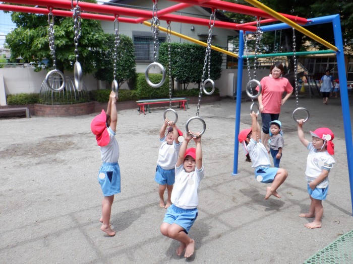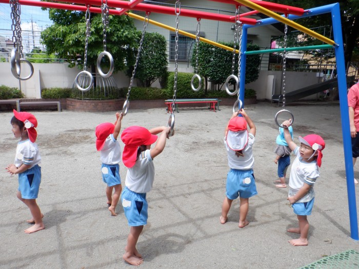 吊り輪が園に届いて、みんなに大興奮なすみれ組さん。