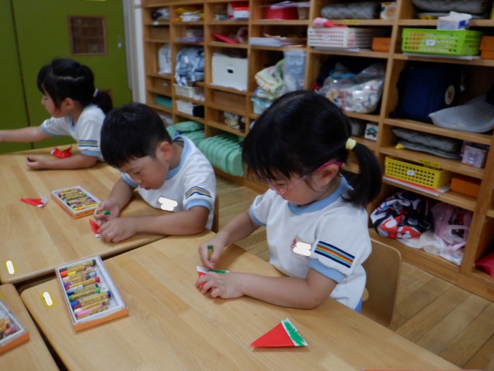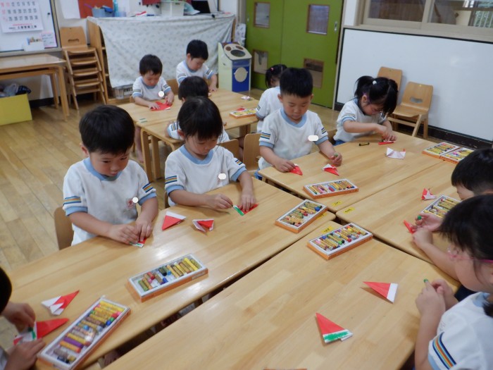 次は、折り紙でスイカを作り🍉!!