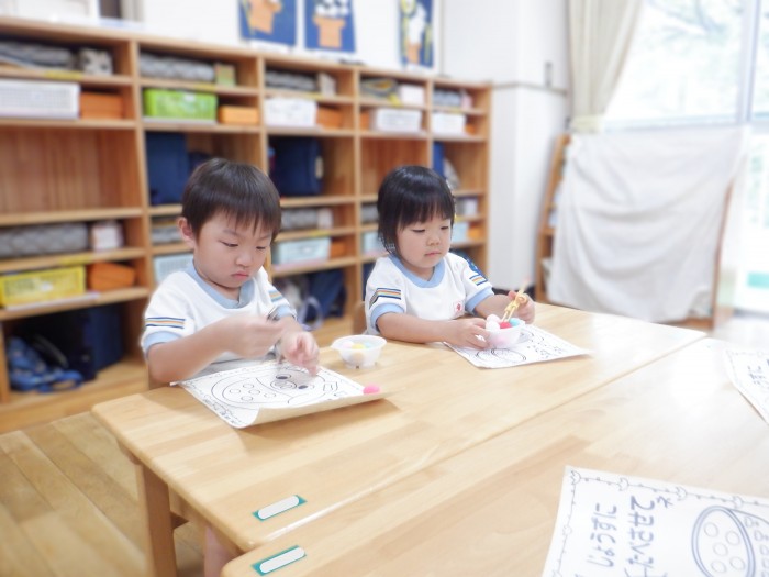 出来たのを先生に「出来たよ~!」と笑顔で見せてくれました!!