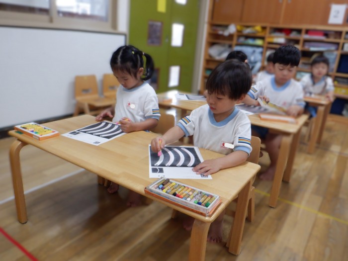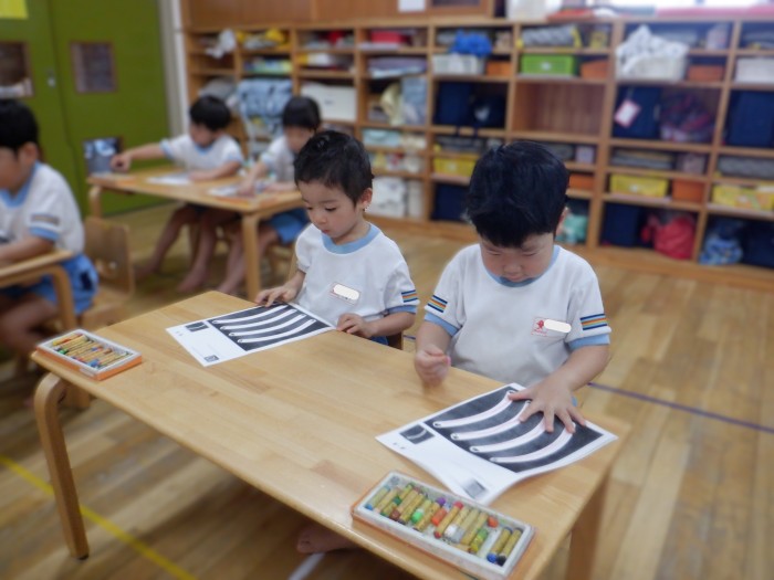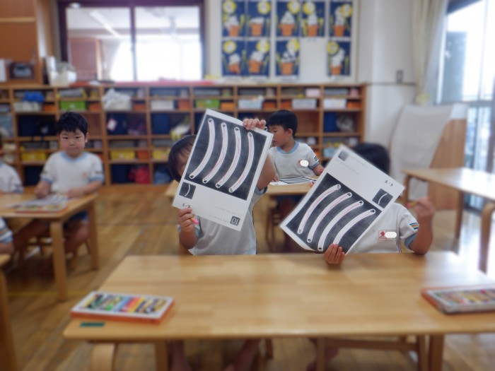「同じものから同じものへ線を引きましょう」というワークを行い、先生のお話しを良く聞いてできました!!
