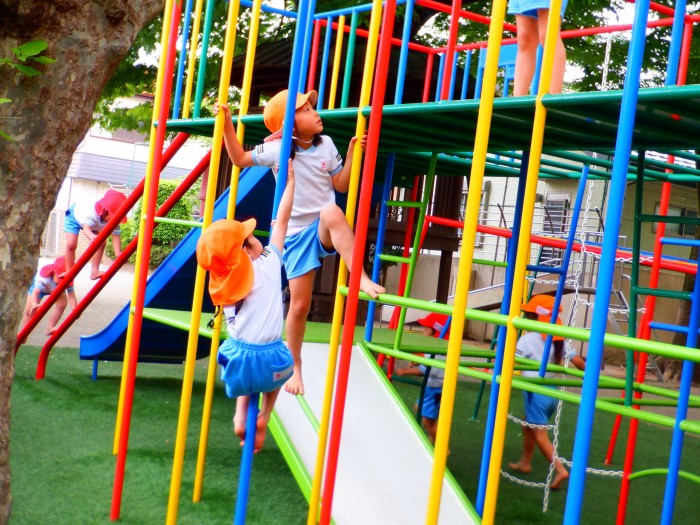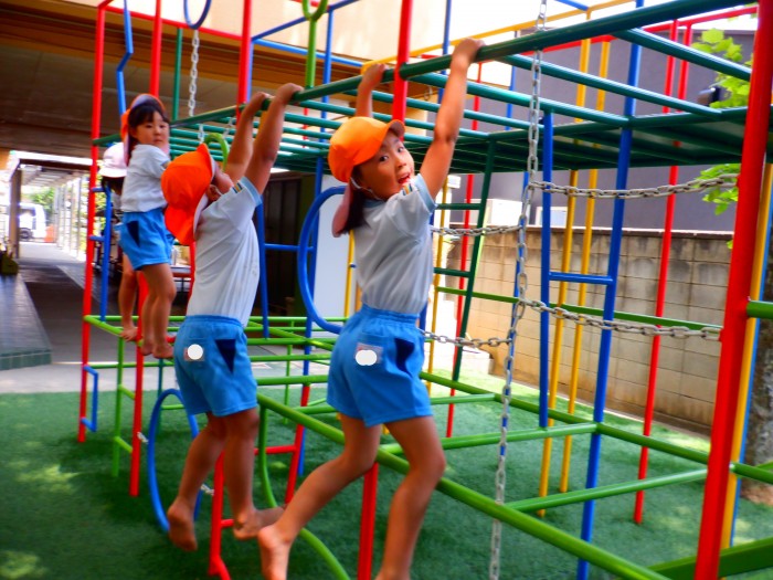~今年も裸足保育が始まりました🦶ジャングラミングの登り棒や手・腕の力だけでの移動に挑戦しています!~