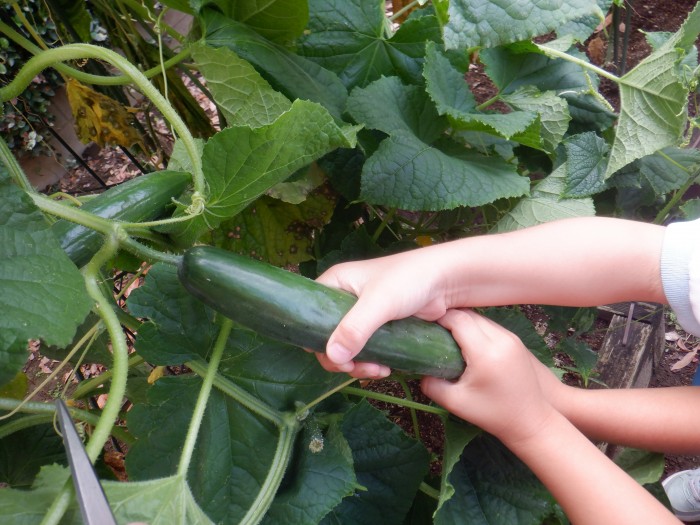 「もっと食べたい!」とおかわりをたくさんして、収穫したきゅうりを全部食べました☆