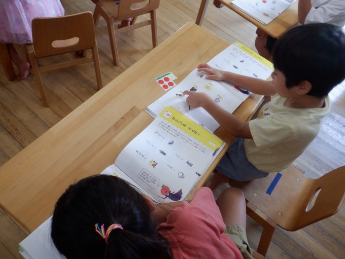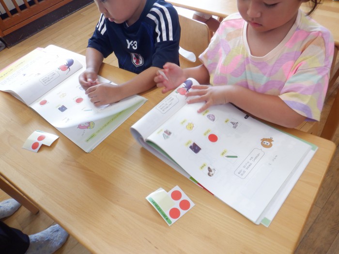 お部屋で論理も行いました。今は反対言葉をやっています!