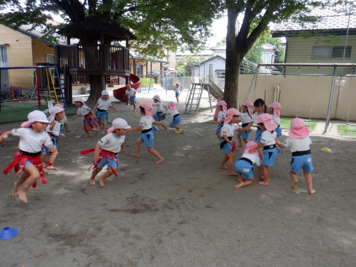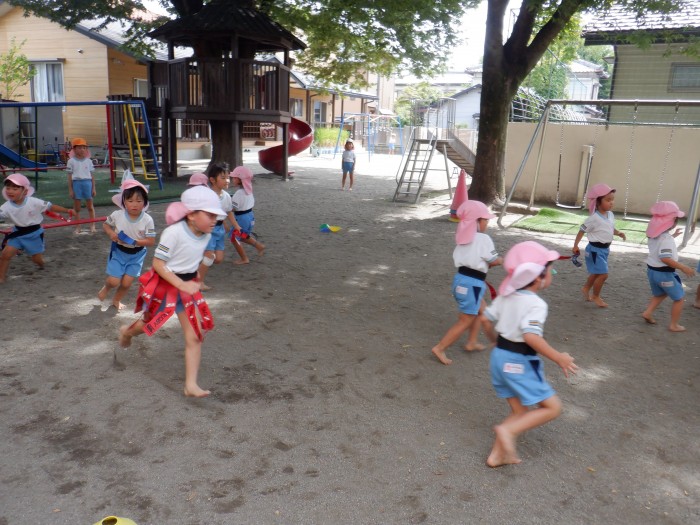 始めはなかなかタグが取れずに「また取れなかった~」と言っている子もいましたが、「取れるまで諦めずに走って!」と伝えるとお友達のタグをよく狙って取ることができました!