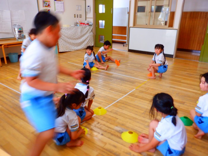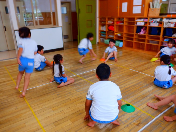 鬼に捕まらないように、すぐに次の子を探してバトンタッチしたり、お友達の隙間を通って上手に鬼をかわしたり、よく考えながら体を動かして楽しんでいました!(^^)