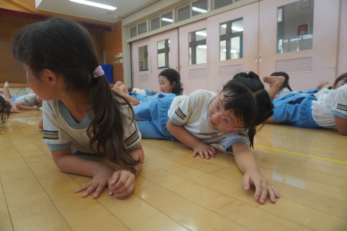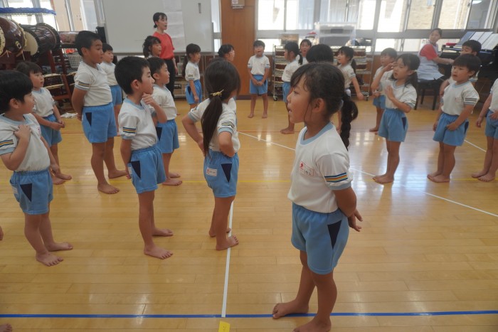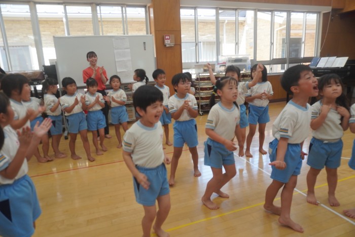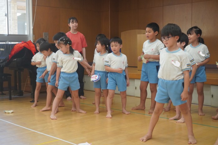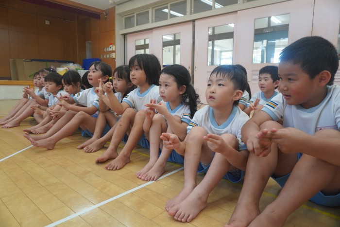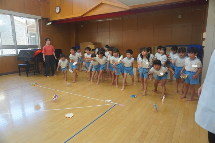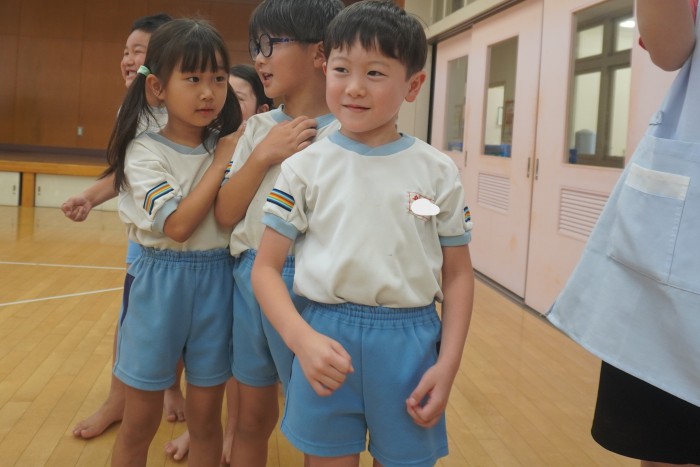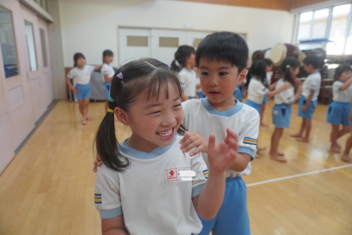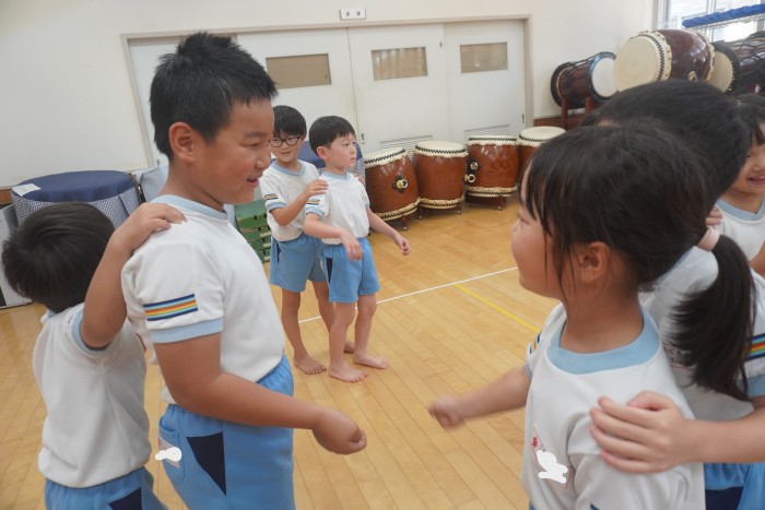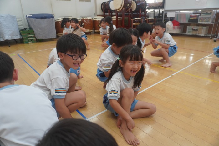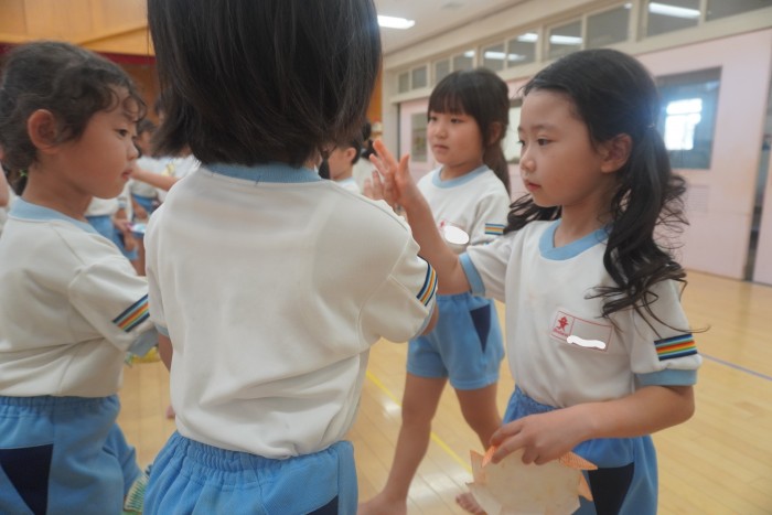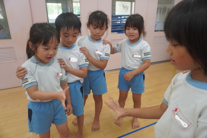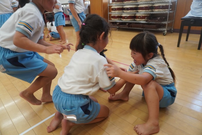 じゃんけんをして勝ったお友達の後ろにがっしゃんこ♪