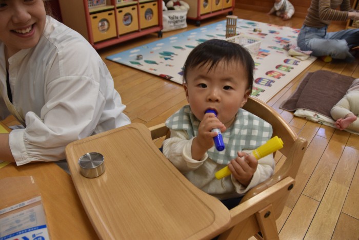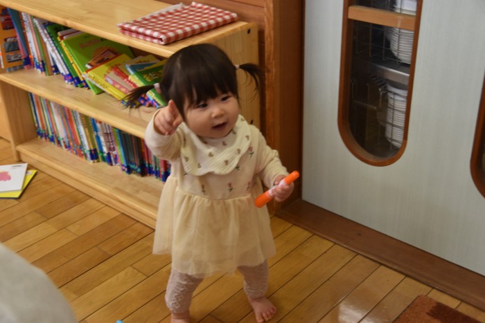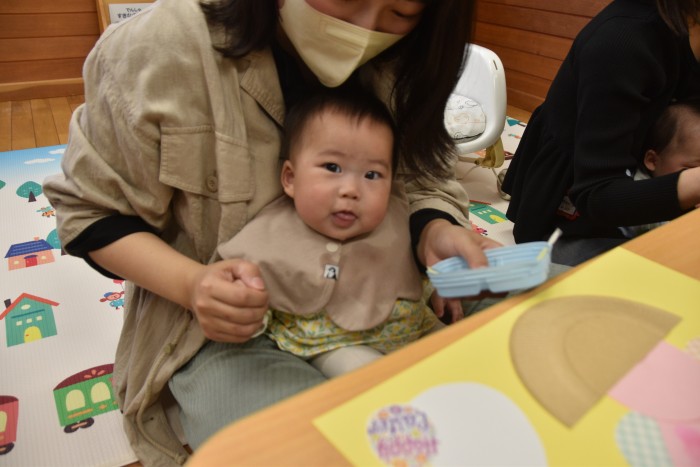ママの製作を観察したり、おもちゃで遊んで待ってたよ(^^♪