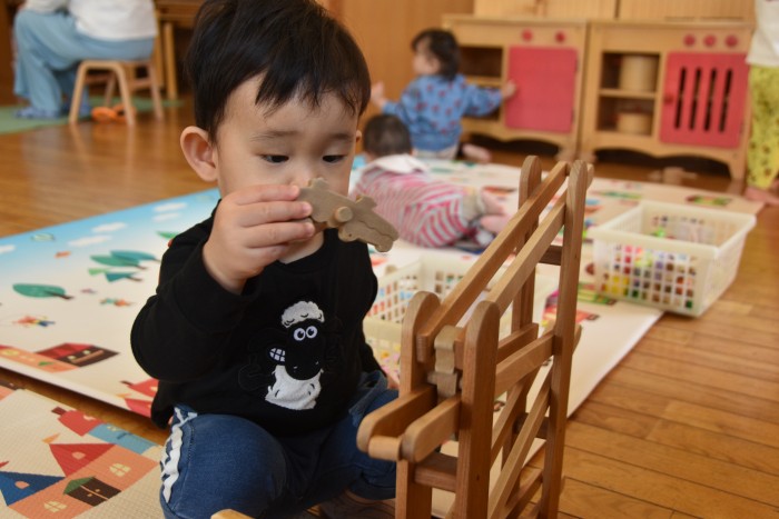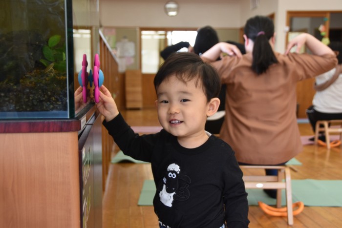 みんなはおもちゃで遊んだり、一緒にストレッチしたり♪