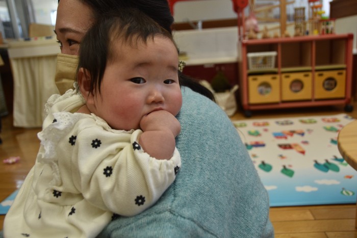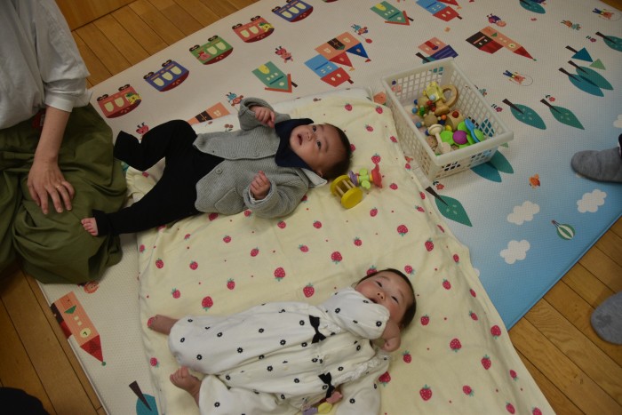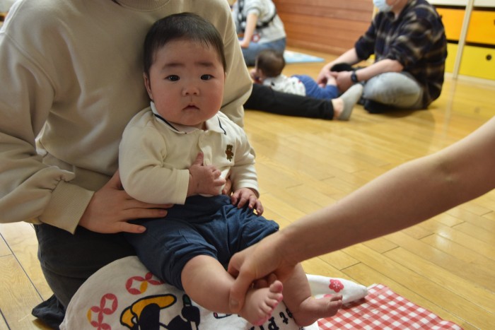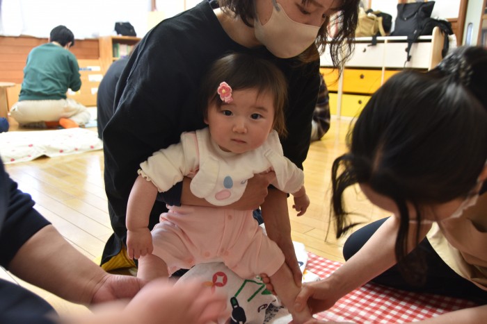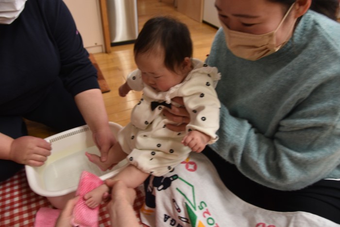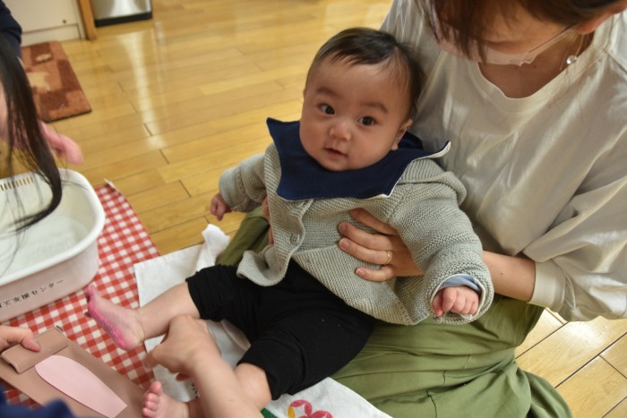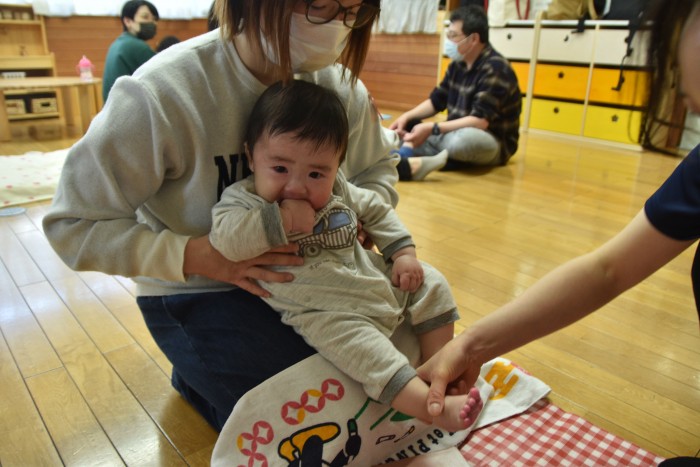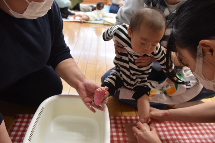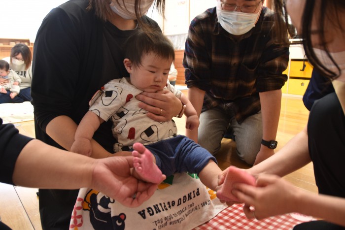 足型取りの大仕事をしたみんなはママが仕上げの最中は
