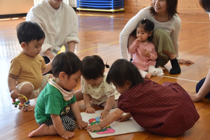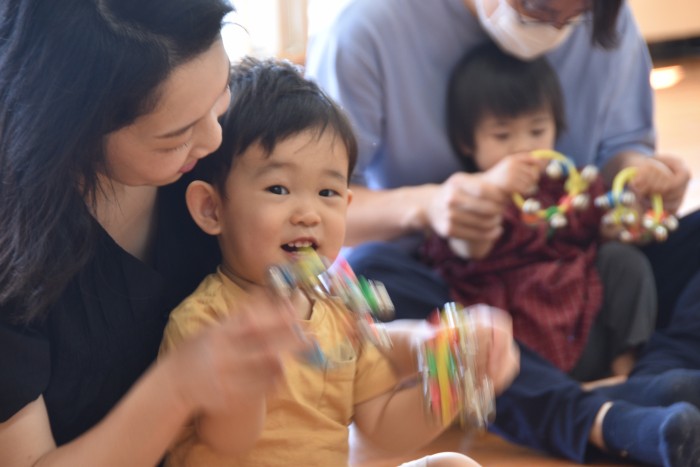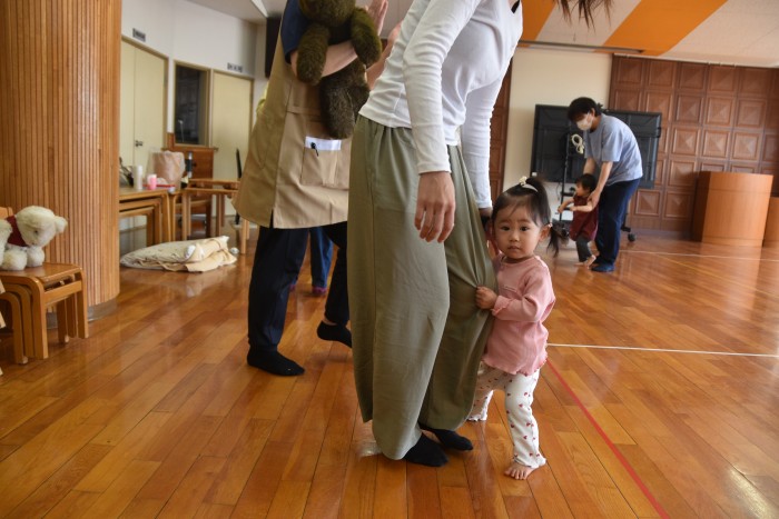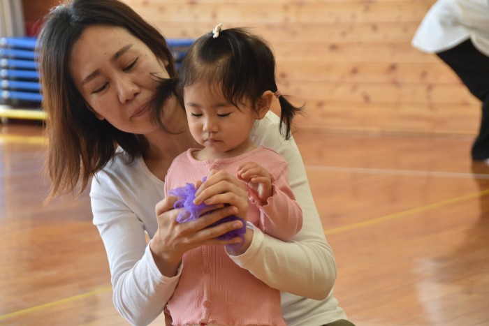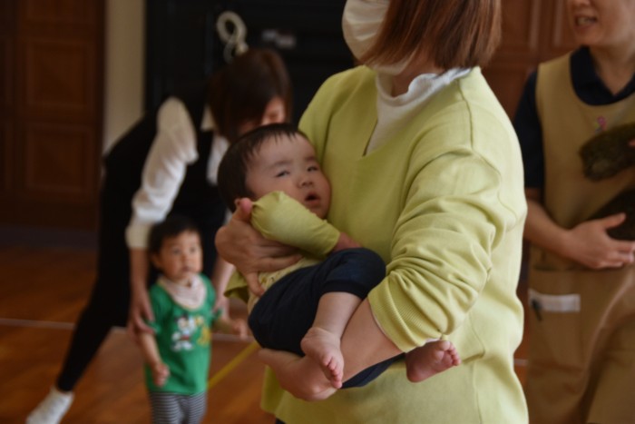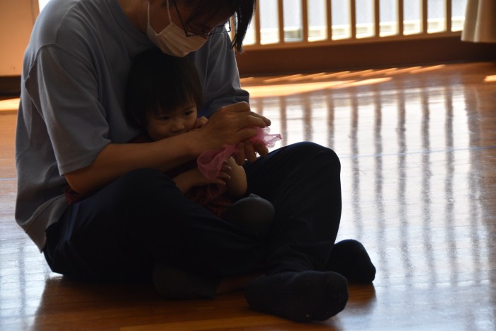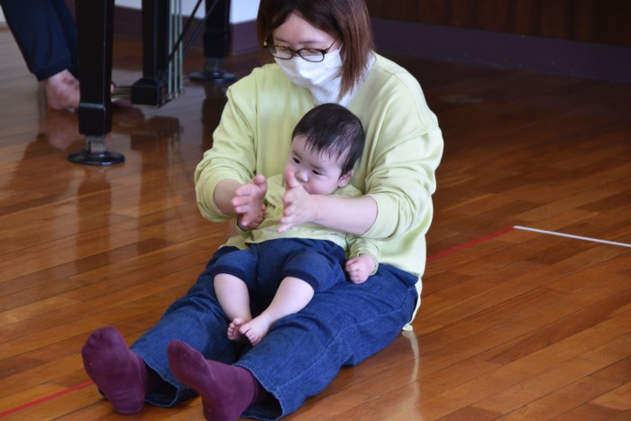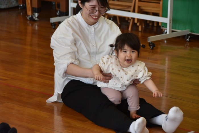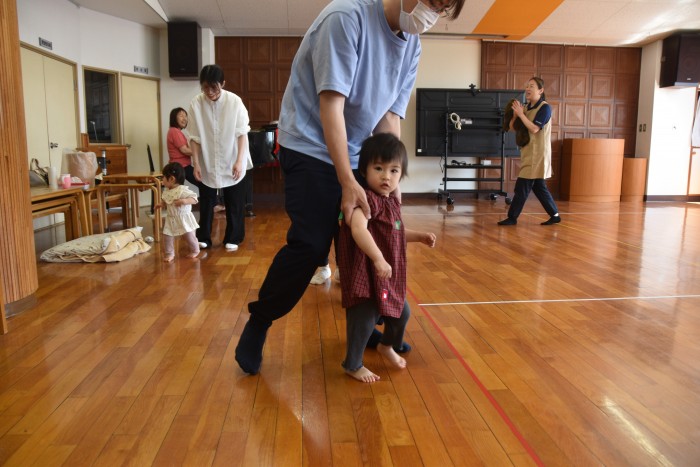 ママやパパと一緒に手を繋いだり抱っこをしもらったりして楽しみました(^^♪