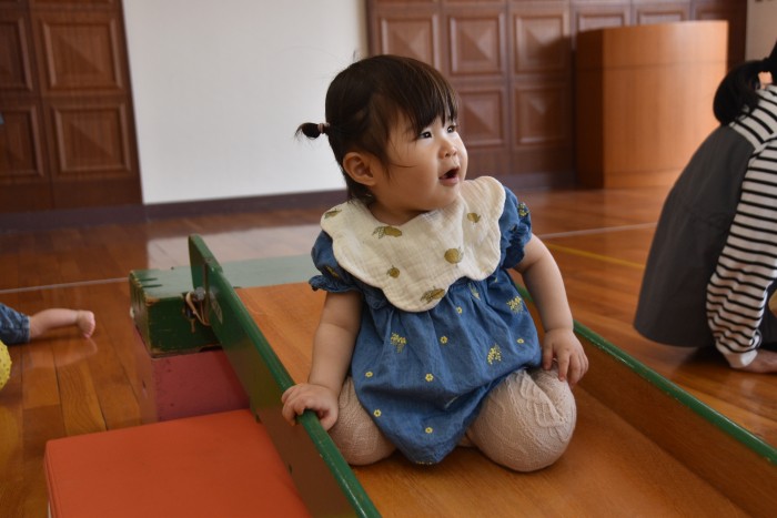 すべり台は滑ってみたり登ってみたりおもいおもいに体を使って遊んでいましたよ♫