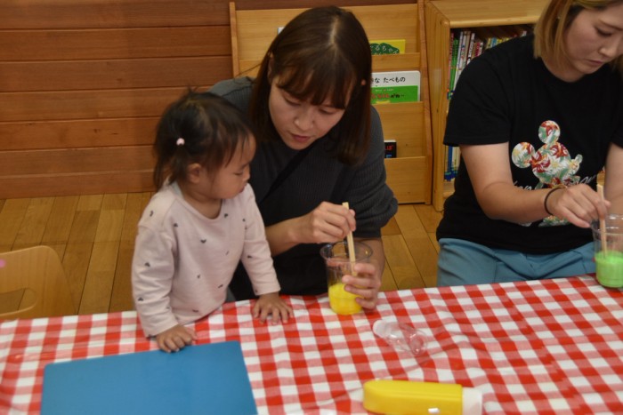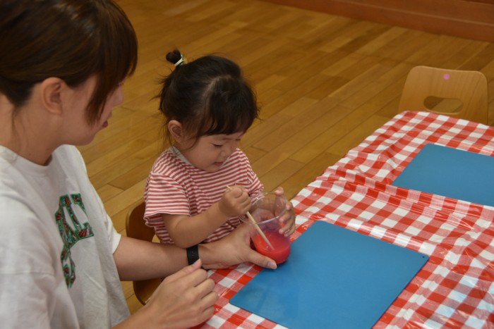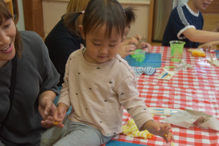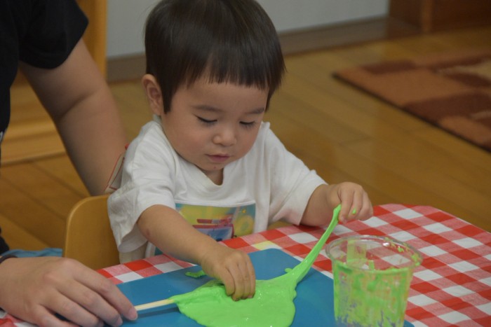 ママたちもスライムを触って一緒に楽しみましたよ😃